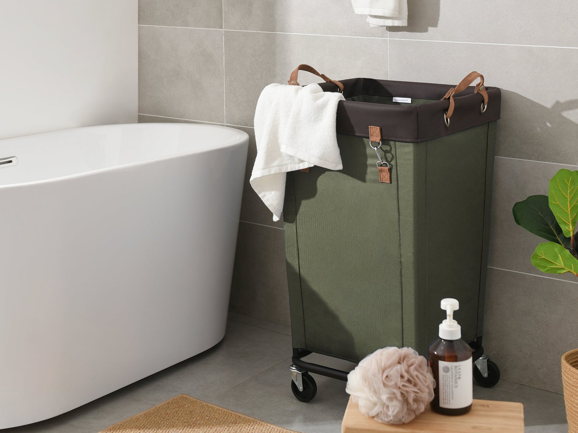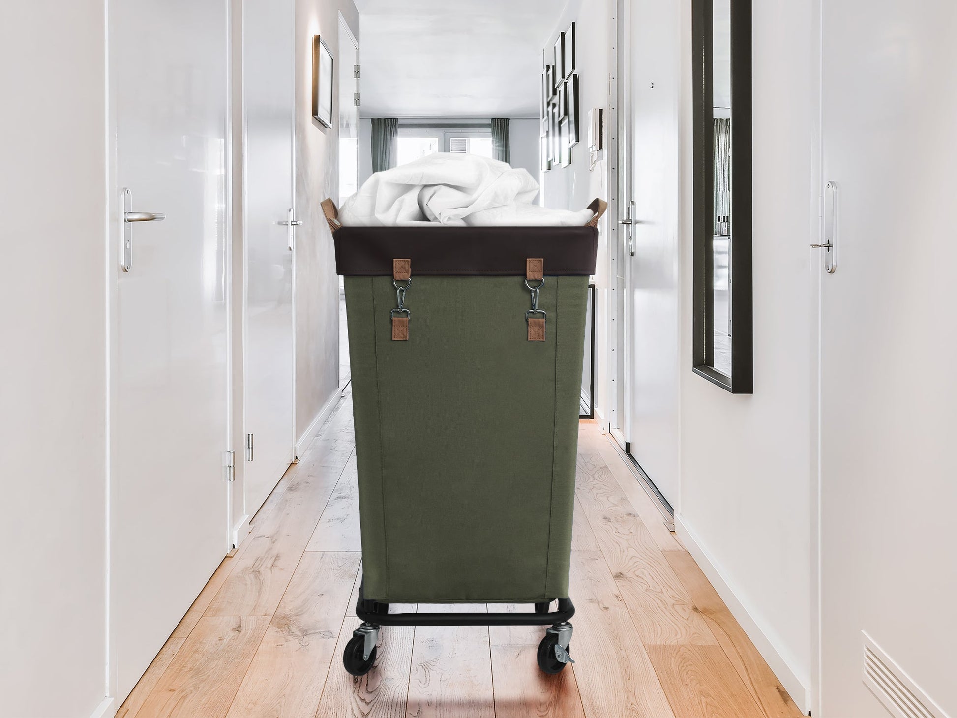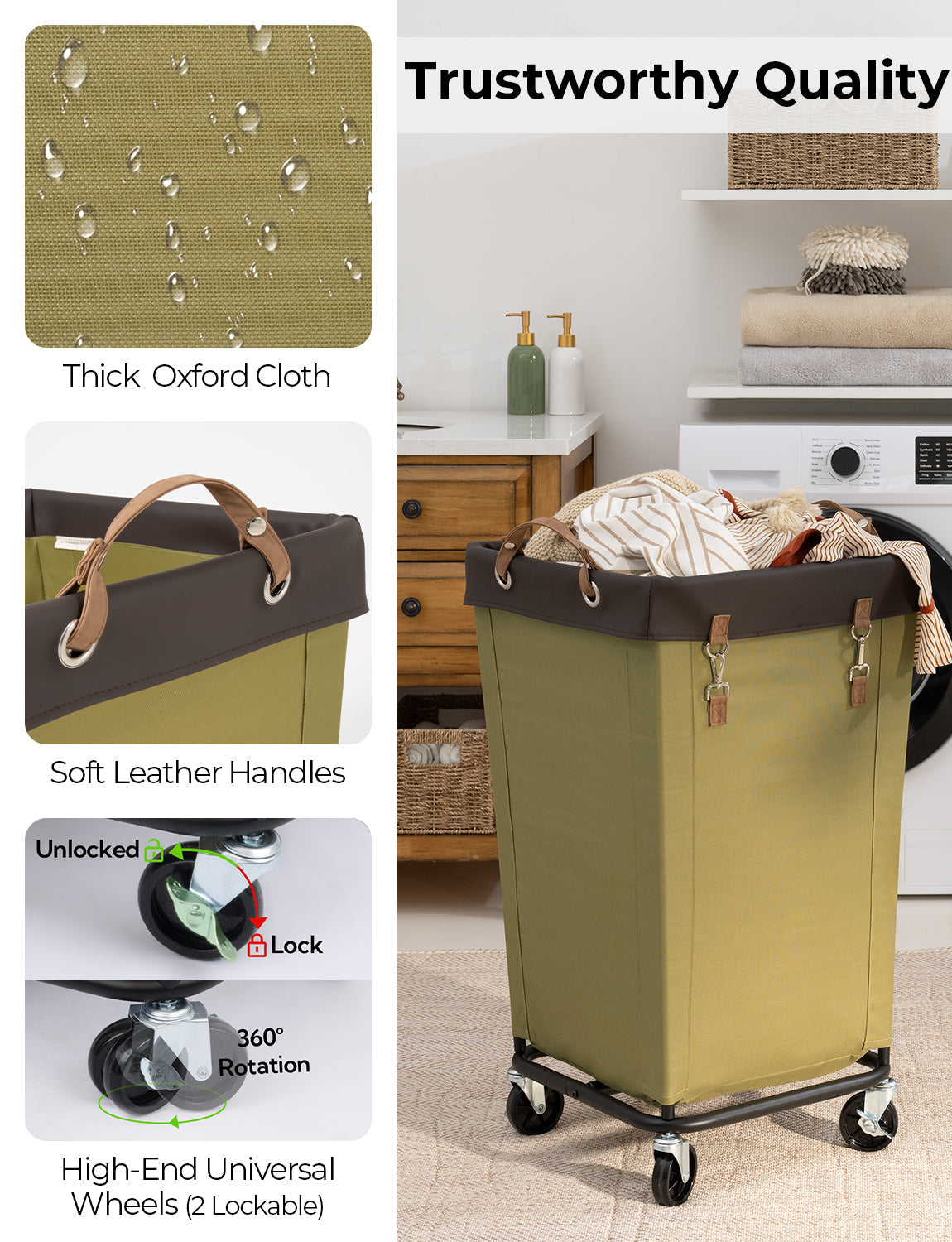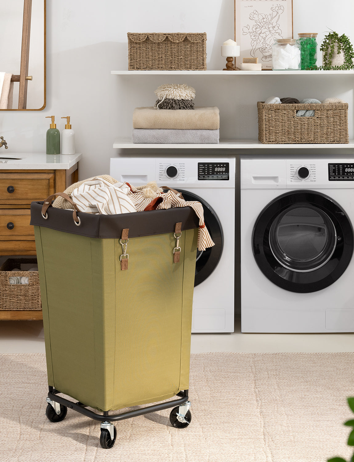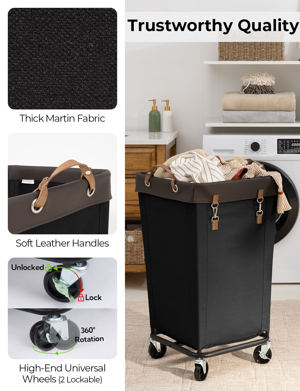 The laundry hamper comes with four 3-inch casters, including two with brakes, ensuring effortless maneuverability as you transport it to the laundry room and stability when locked in place.