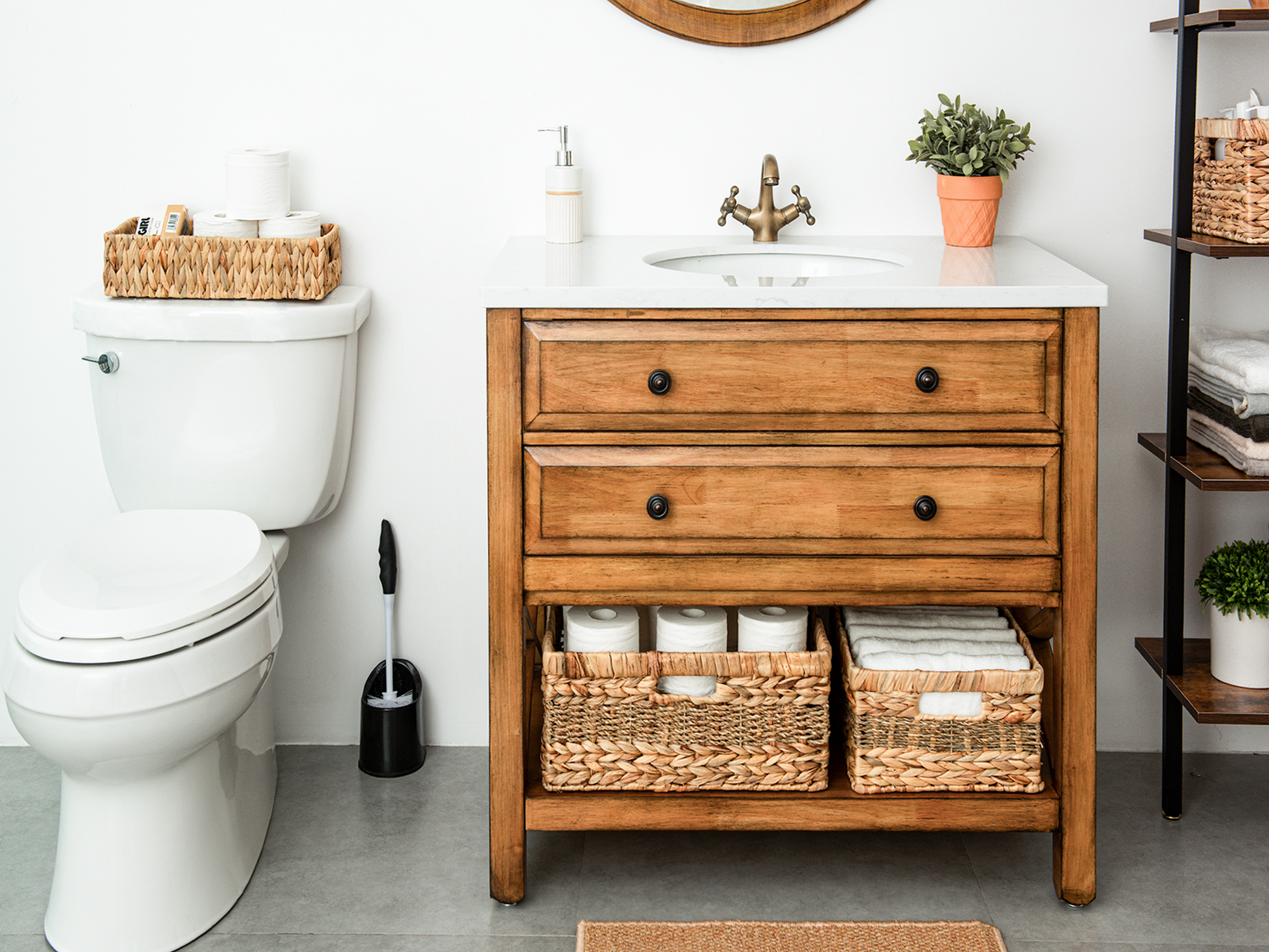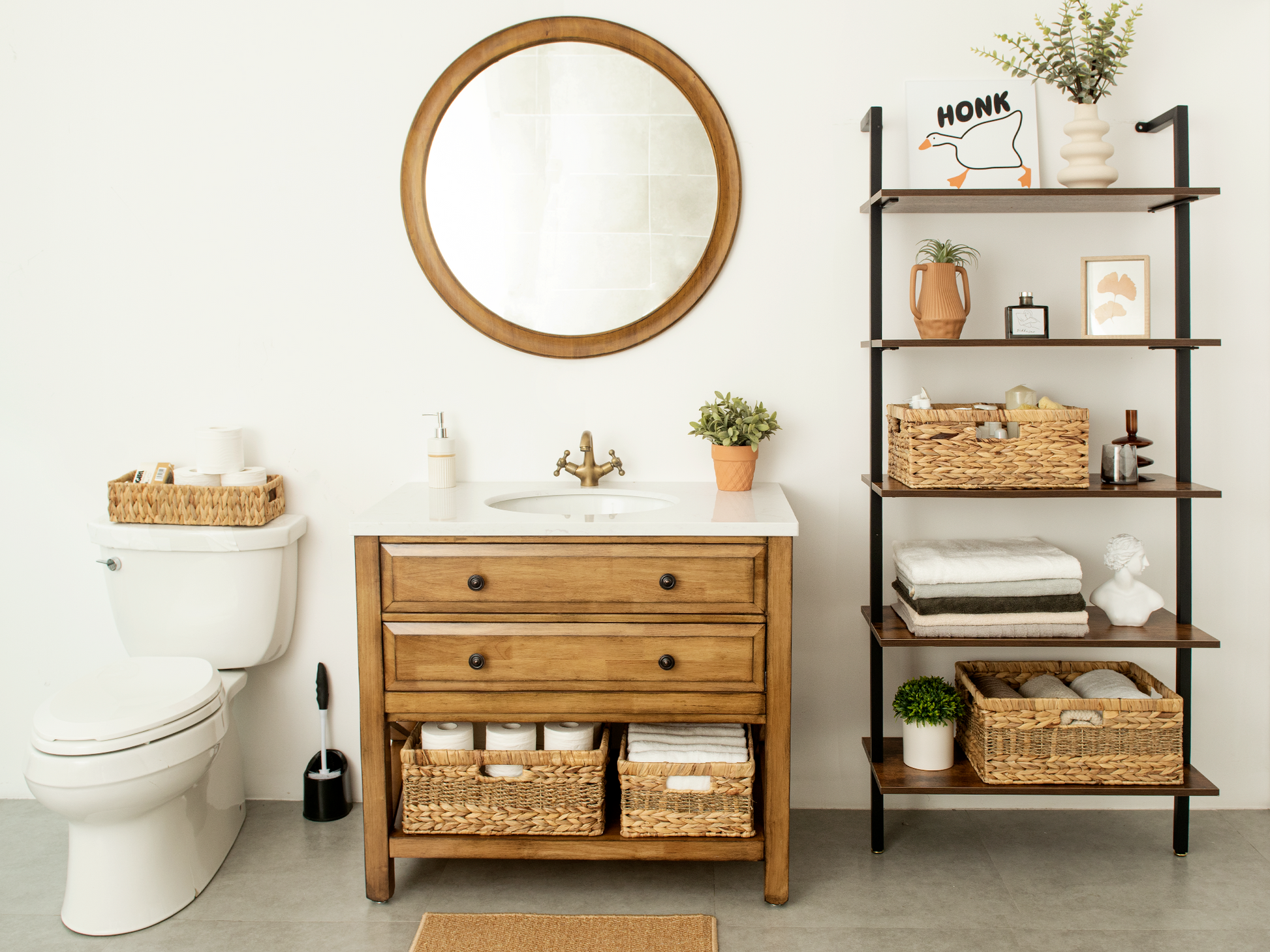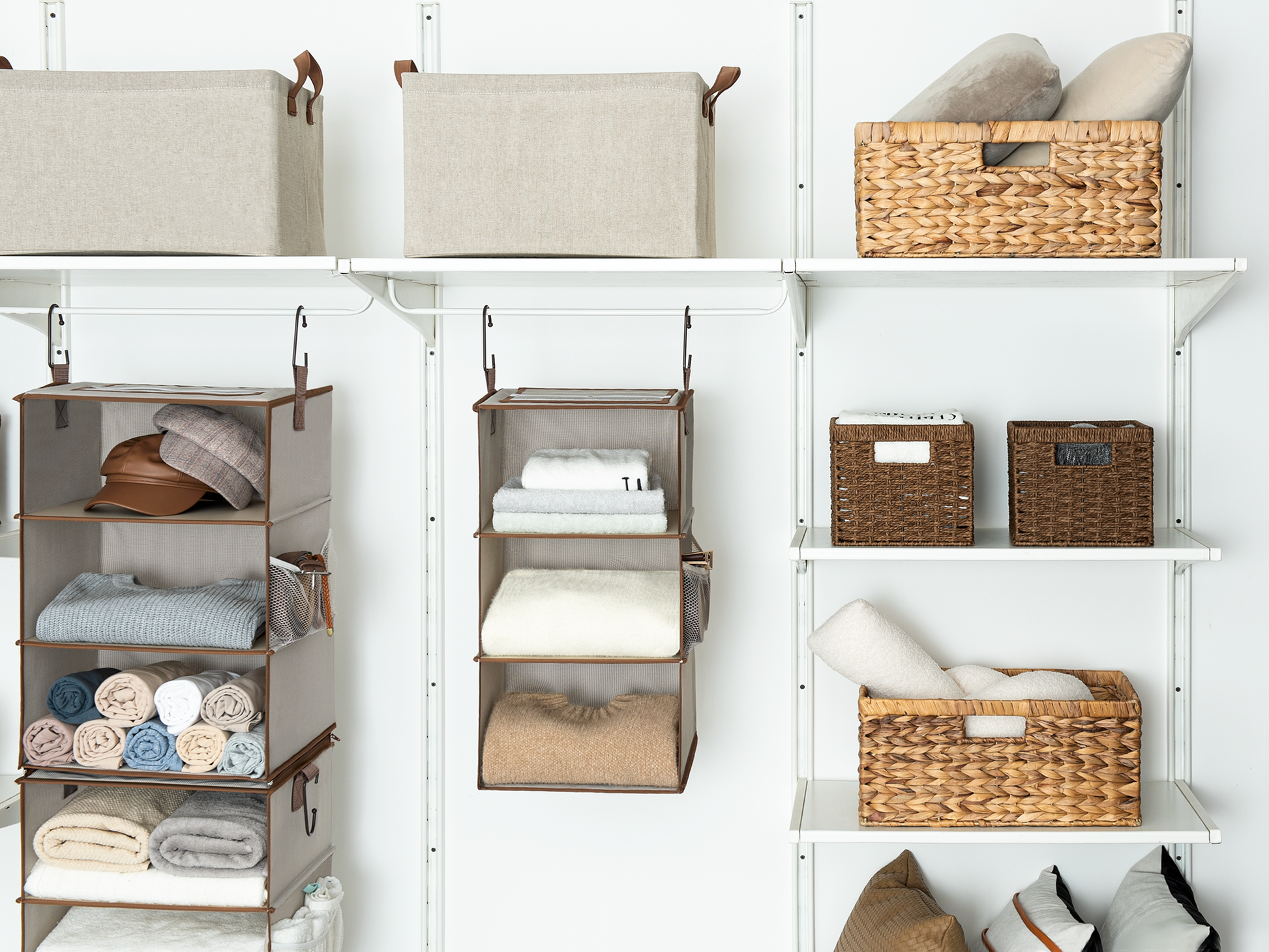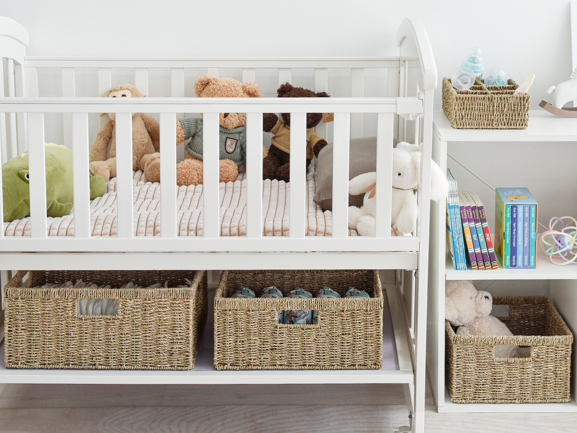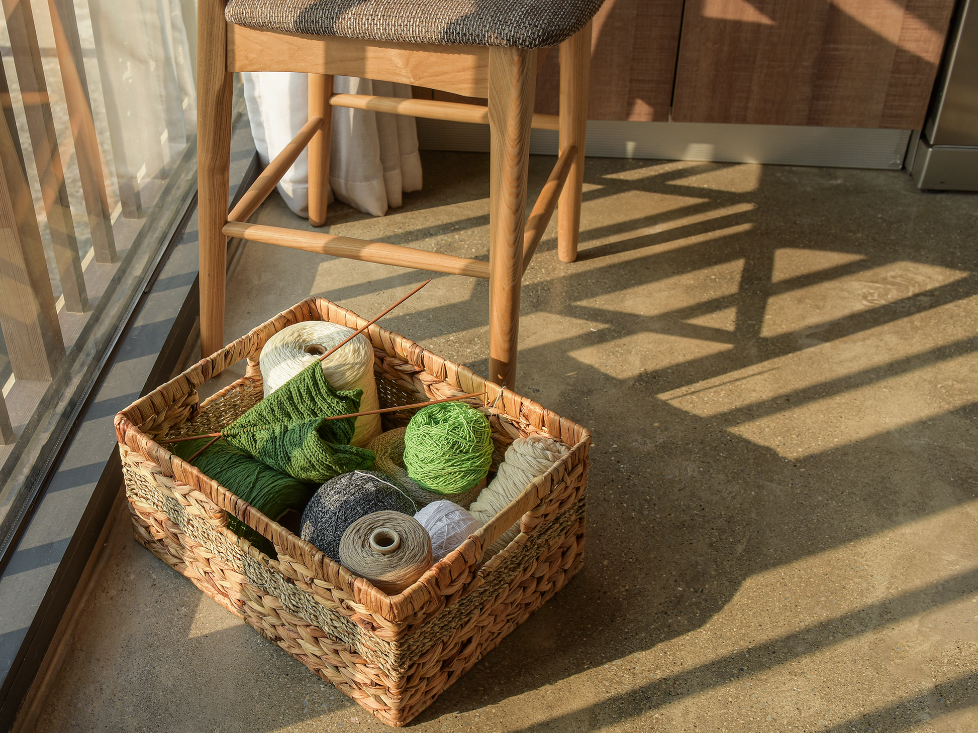 Versatile storage basket for storing towels, blankets, pet toys, and household items.