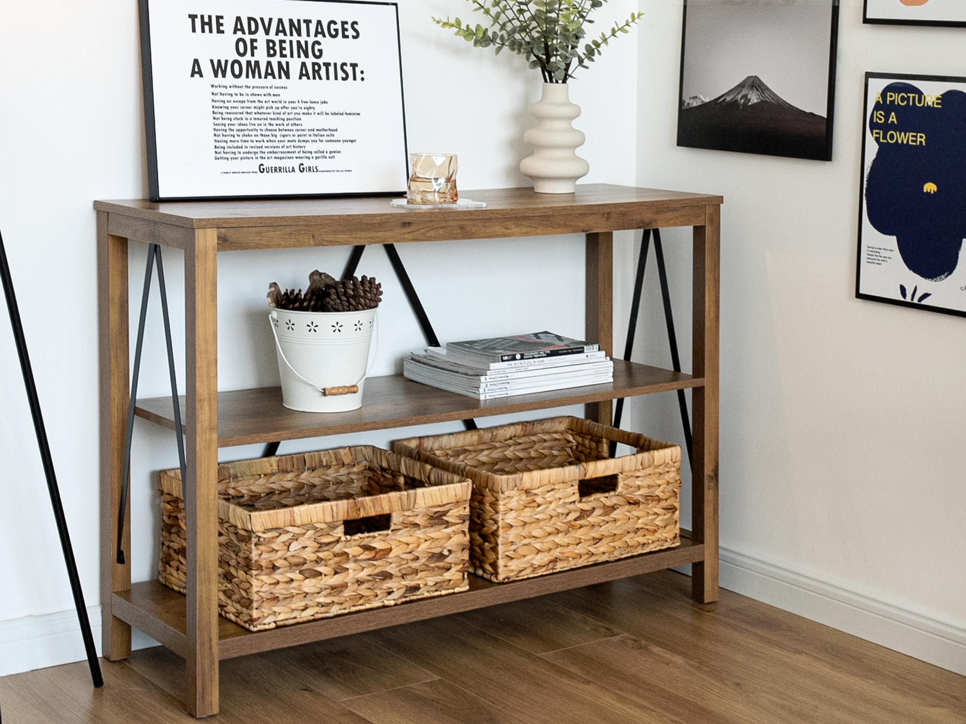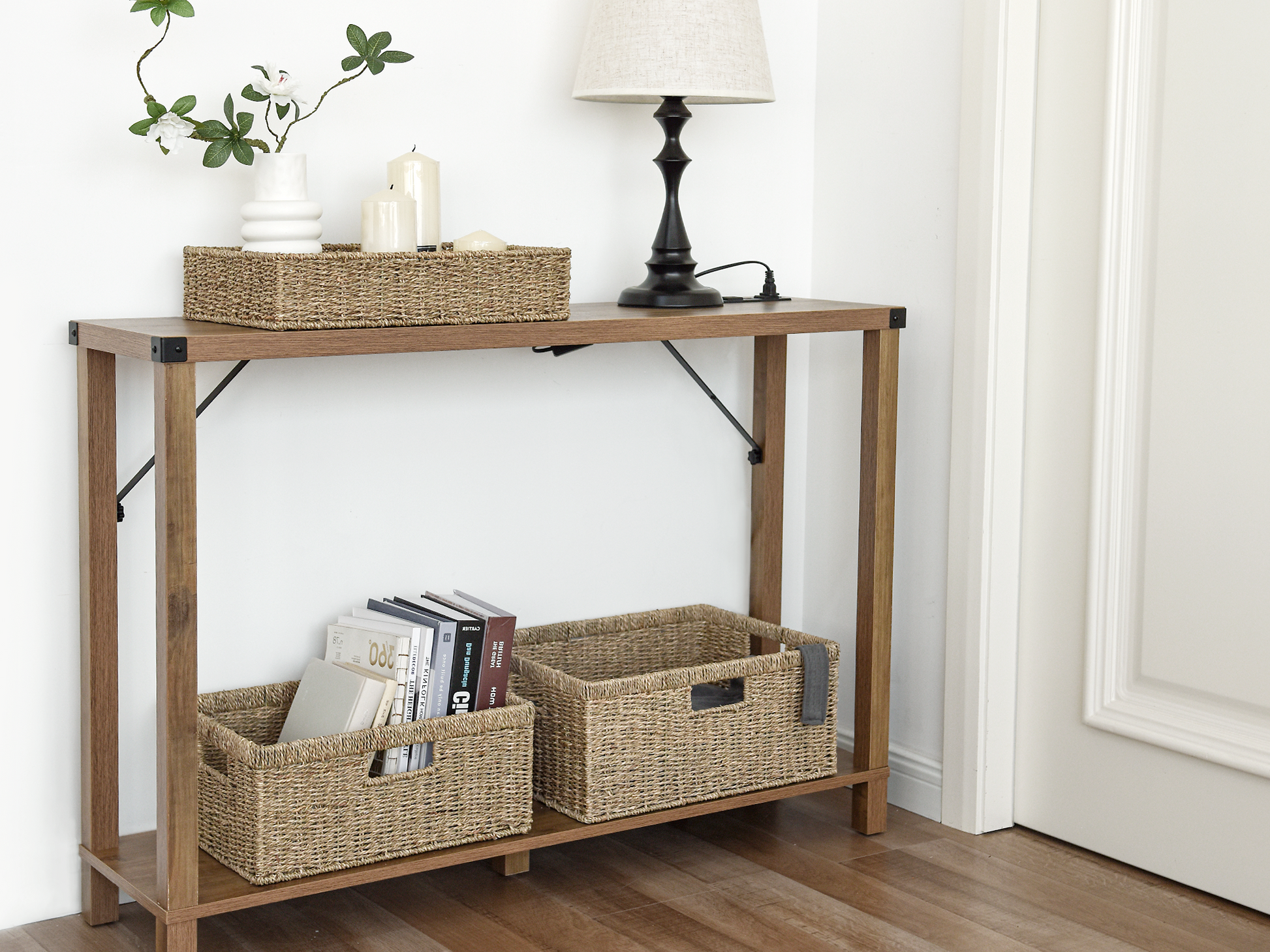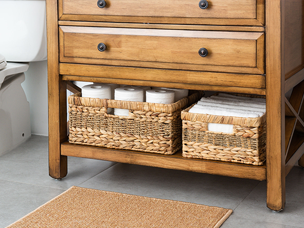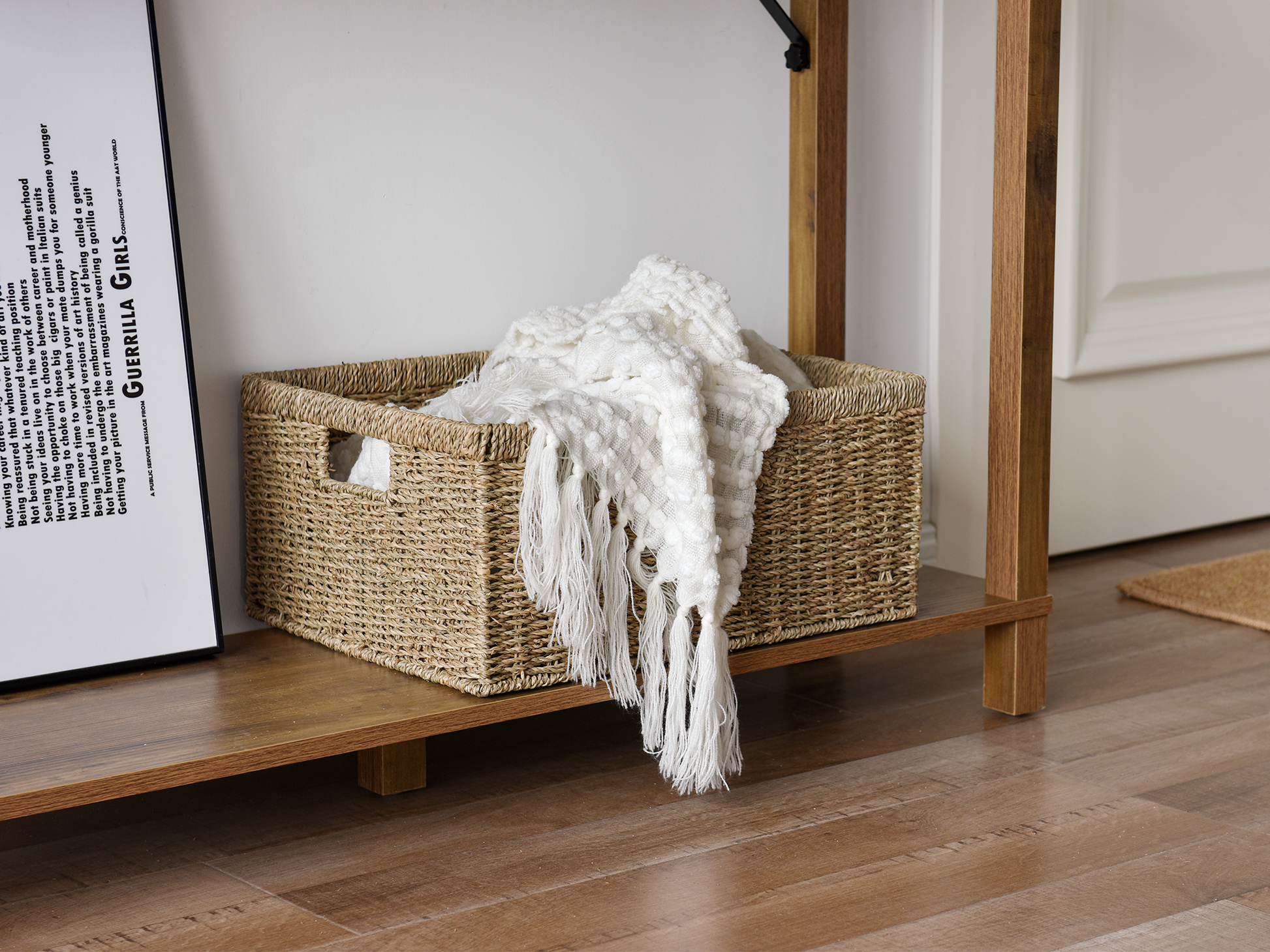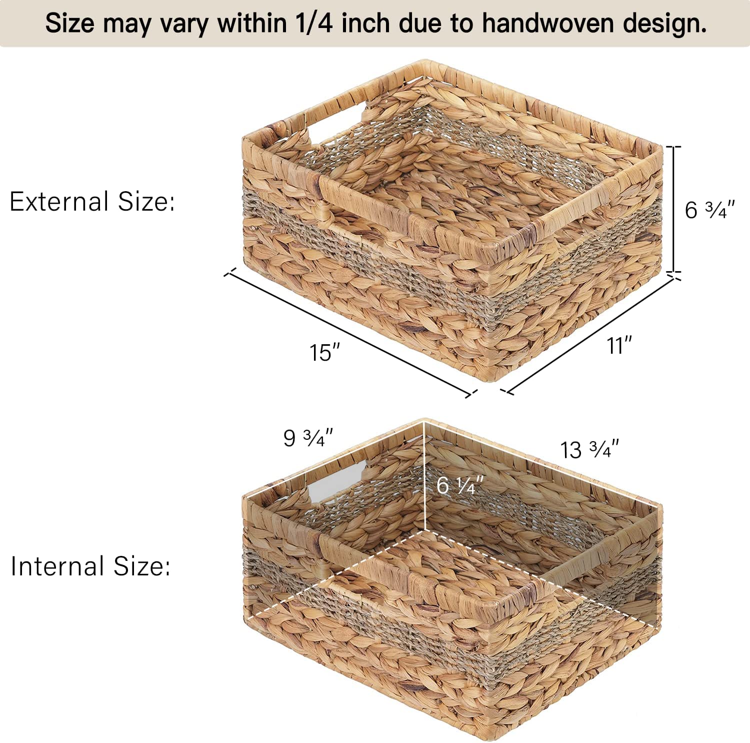 Large Rectangular Wicker Basket with Built-in Handles, 1 Pack
