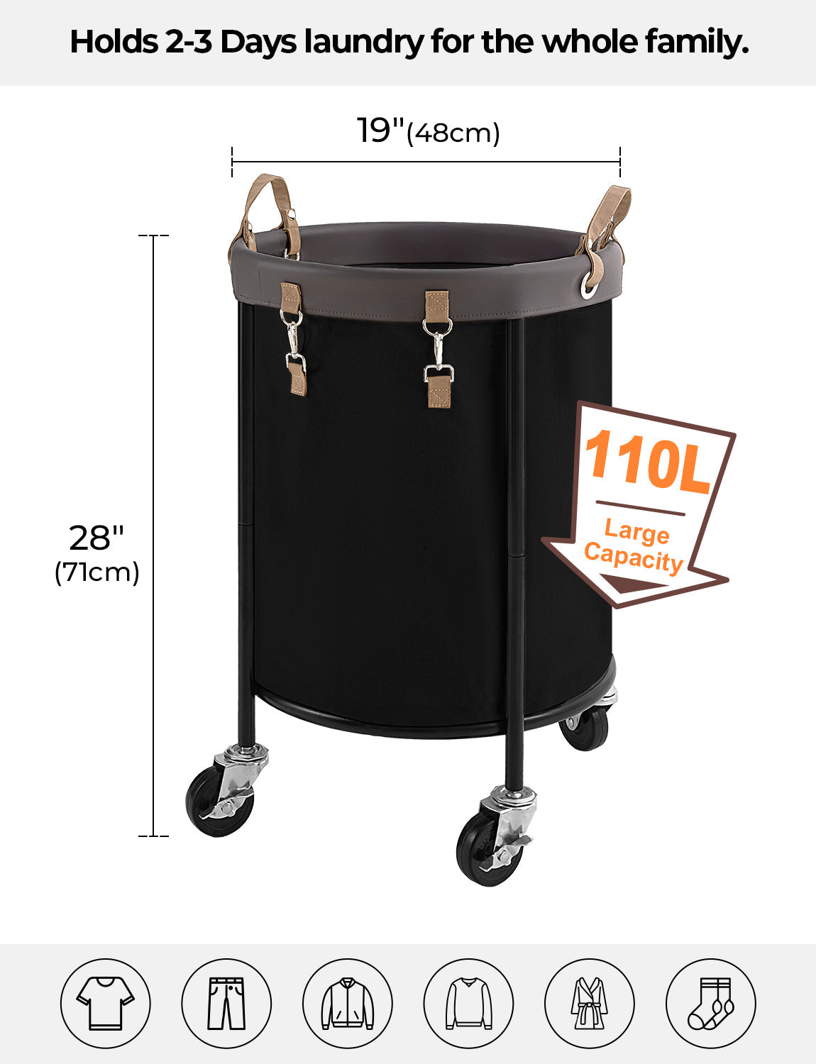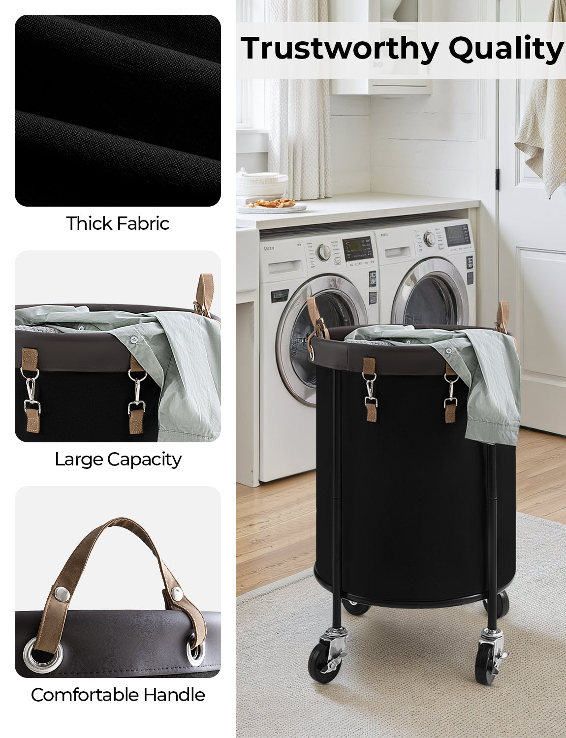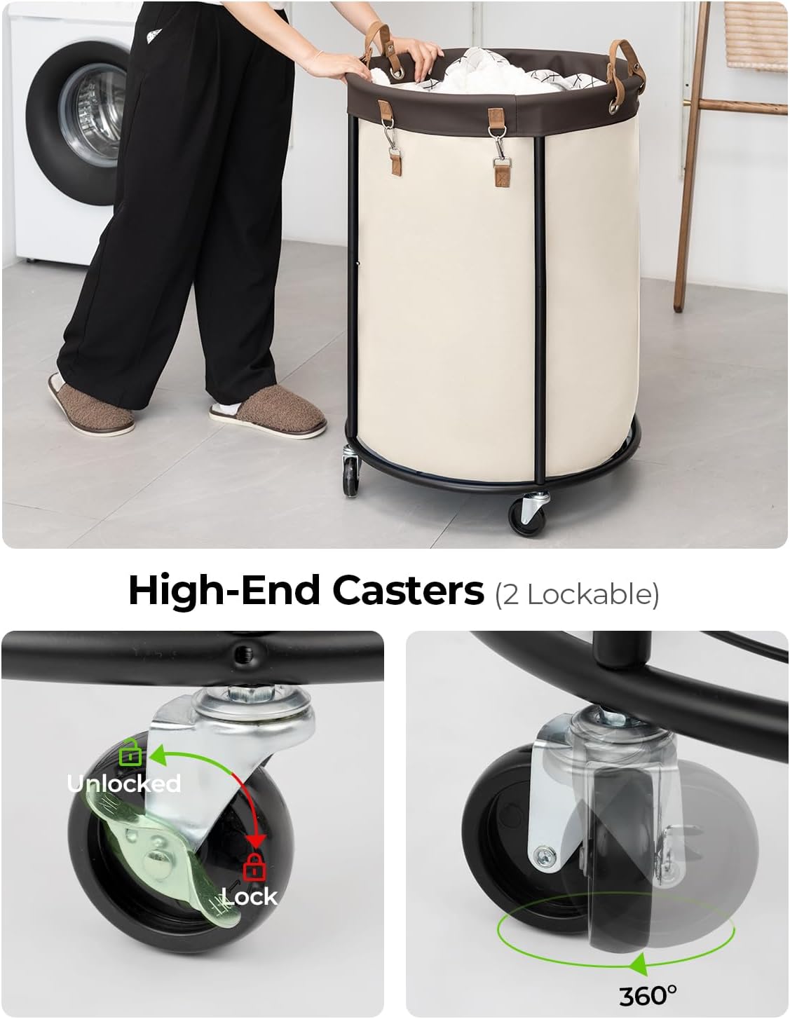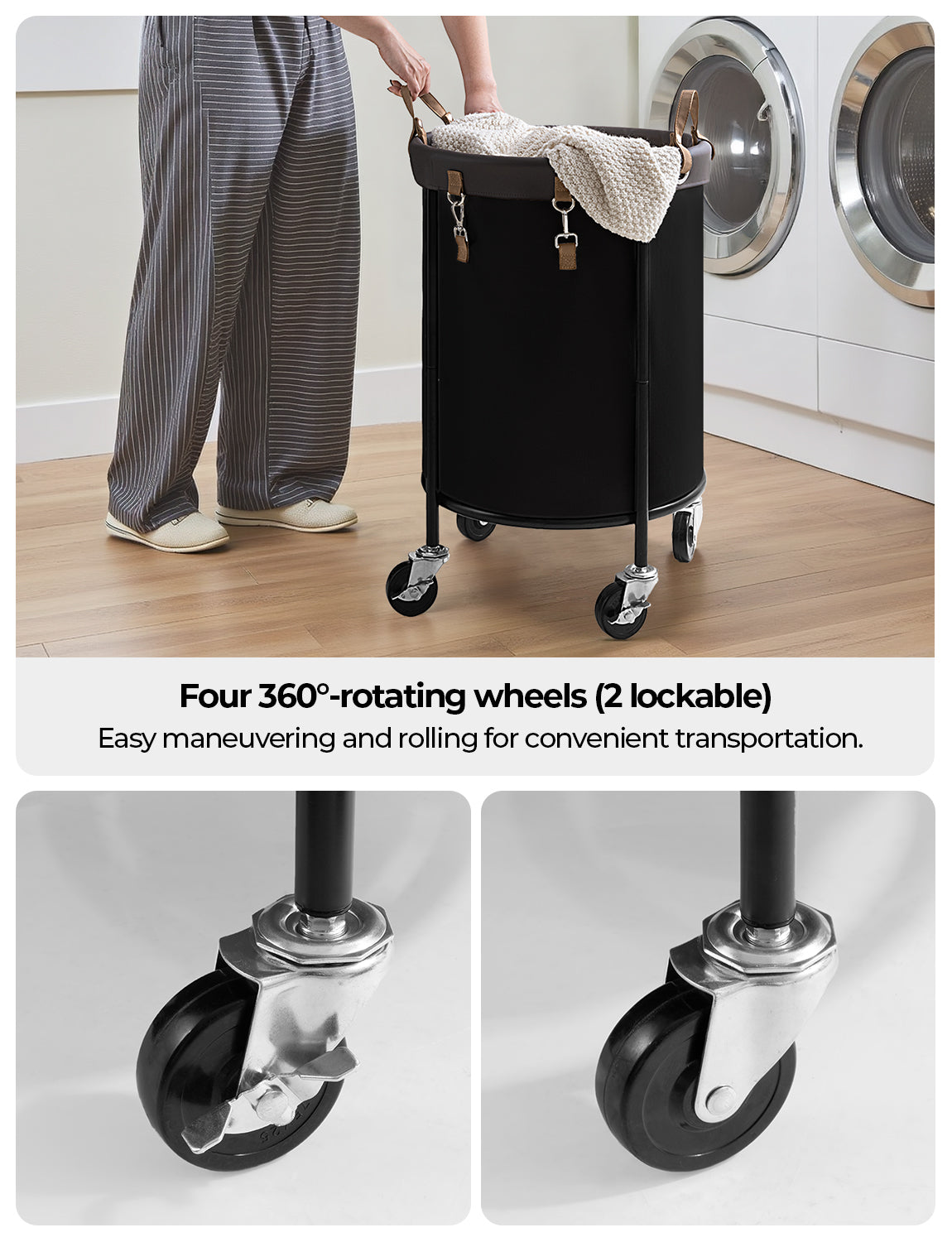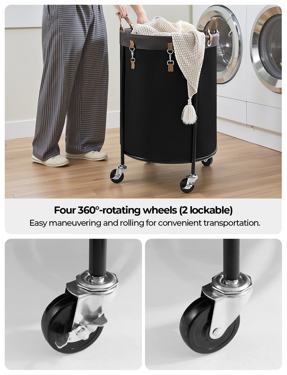 High-End Universal Wheels: The laundry hamper comes with four 360°-rotating industrial casters (2 lockable), ensuring effortless maneuverability as you transport it to the laundry room and stability when locked in place.