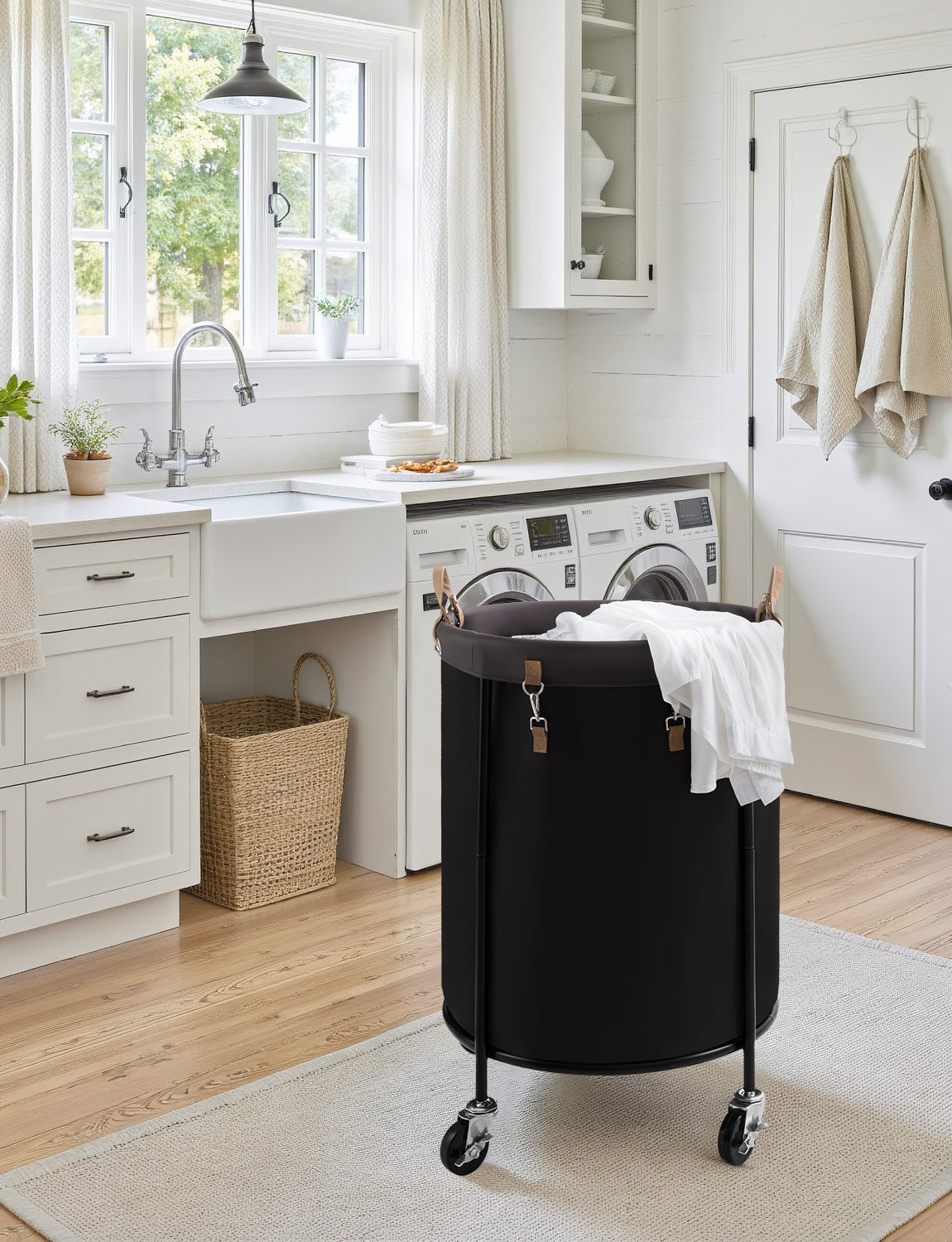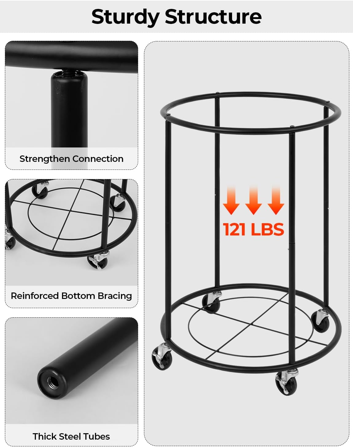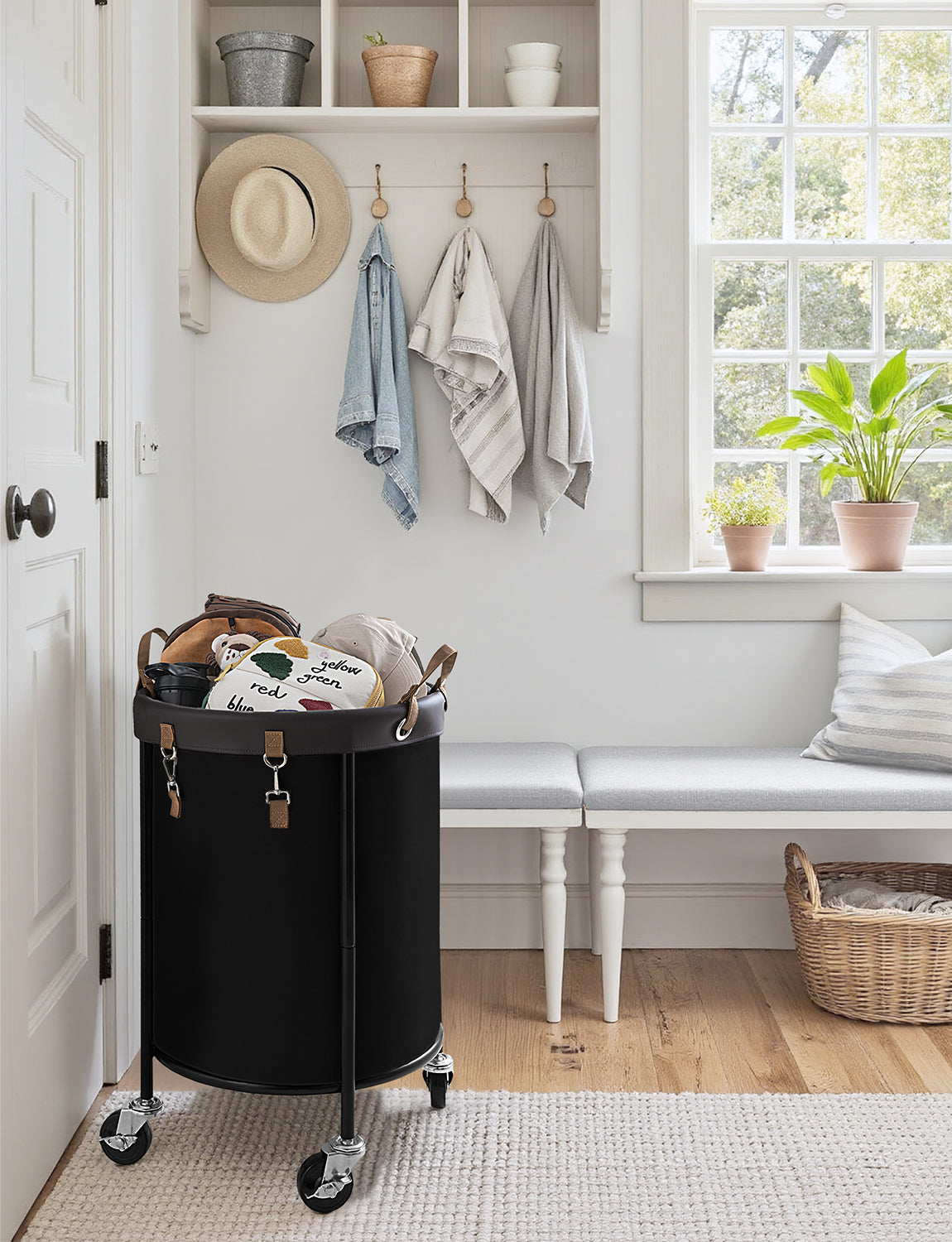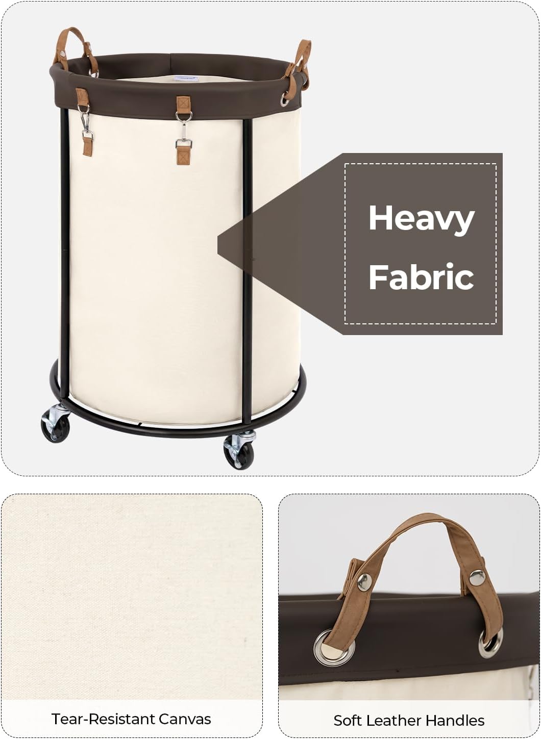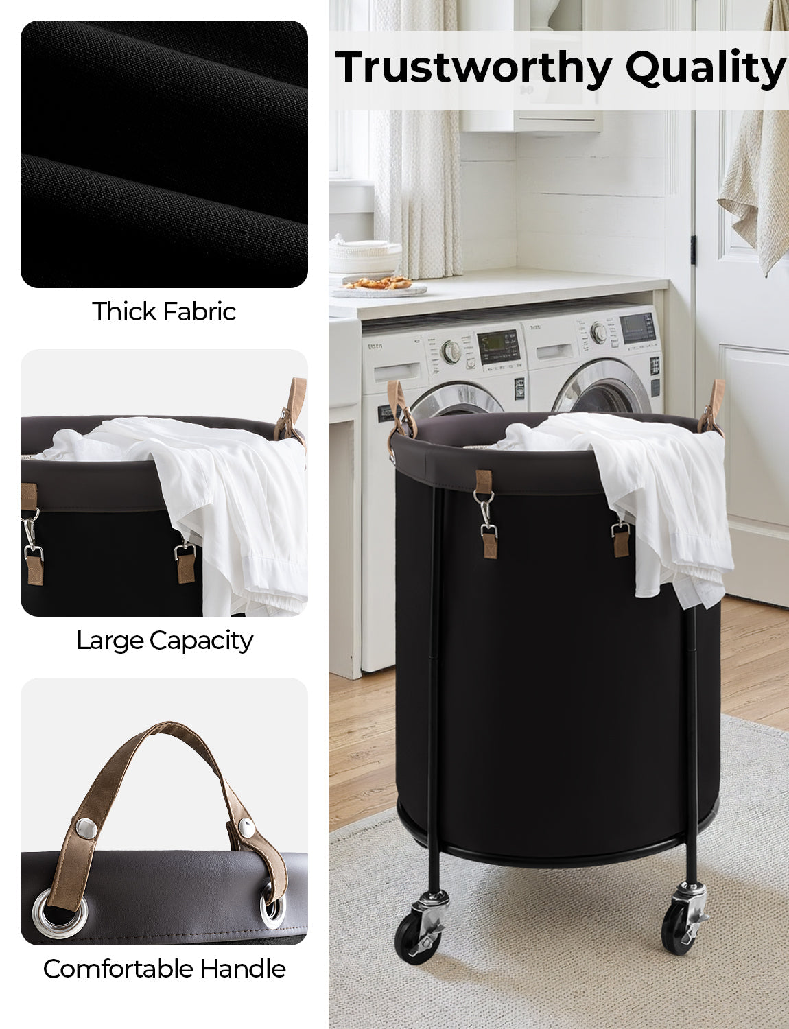 High-End Universal Wheels: The laundry hamper comes with four 360°-rotating industrial casters (2 lockable), ensuring effortless maneuverability as you transport it to the laundry room and stability when locked in place.