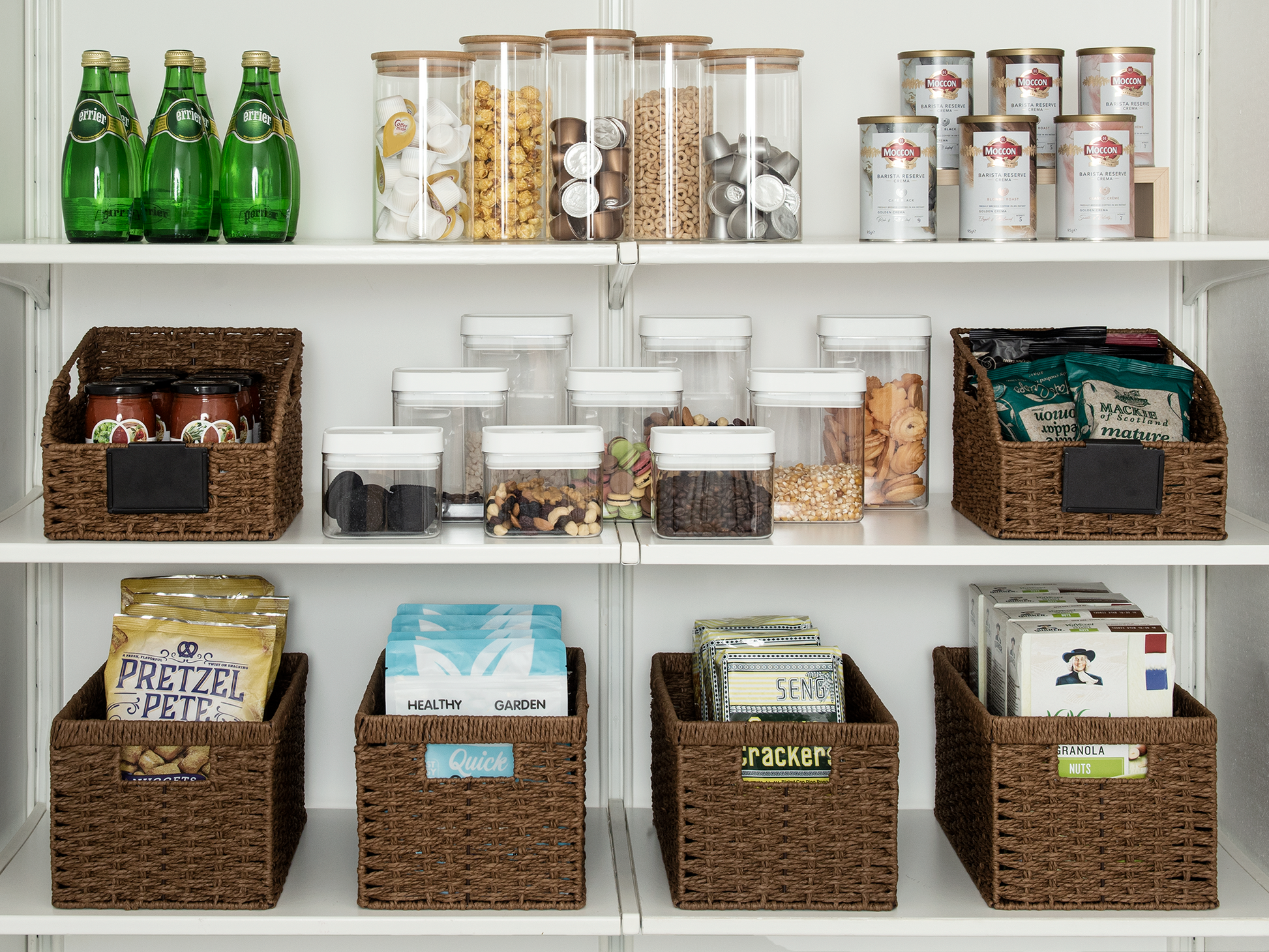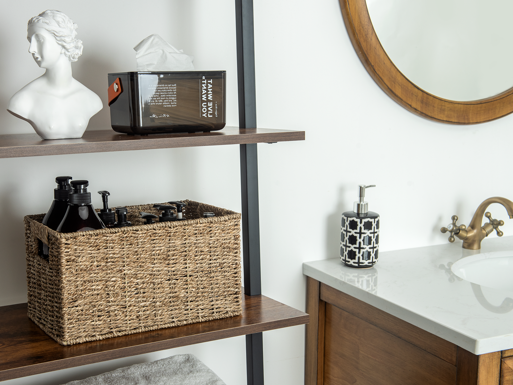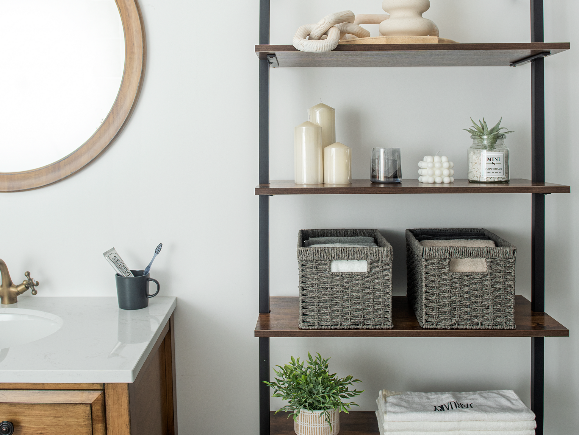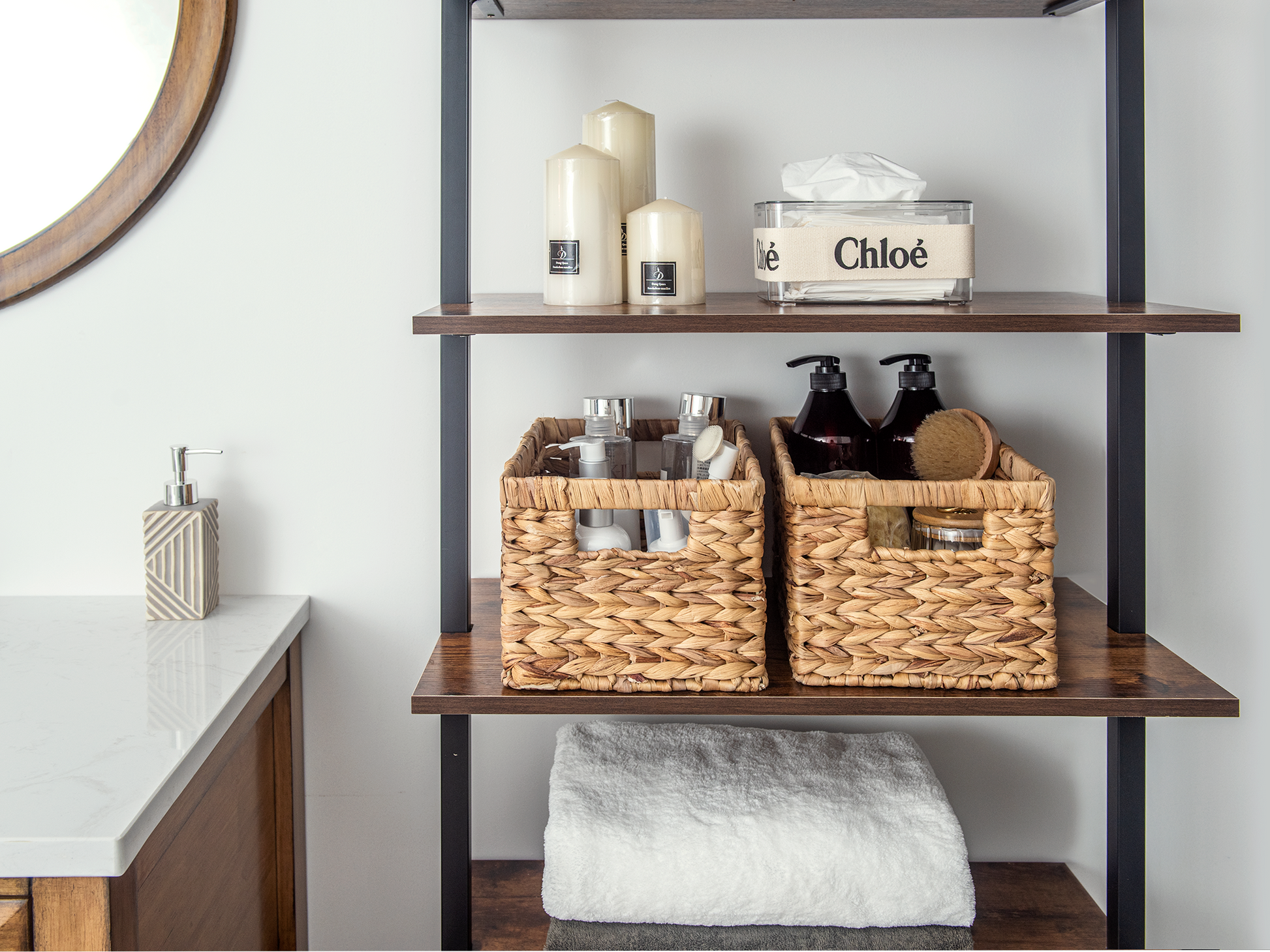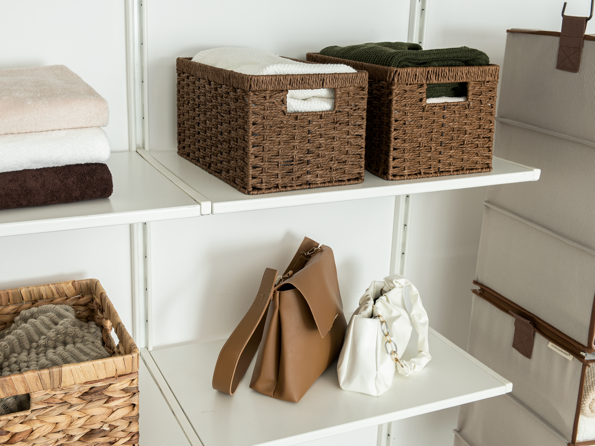 Versatile woven baskets for storing hand towels, toiletries in the bath, or magazines, games, pet toys, media, and household items.