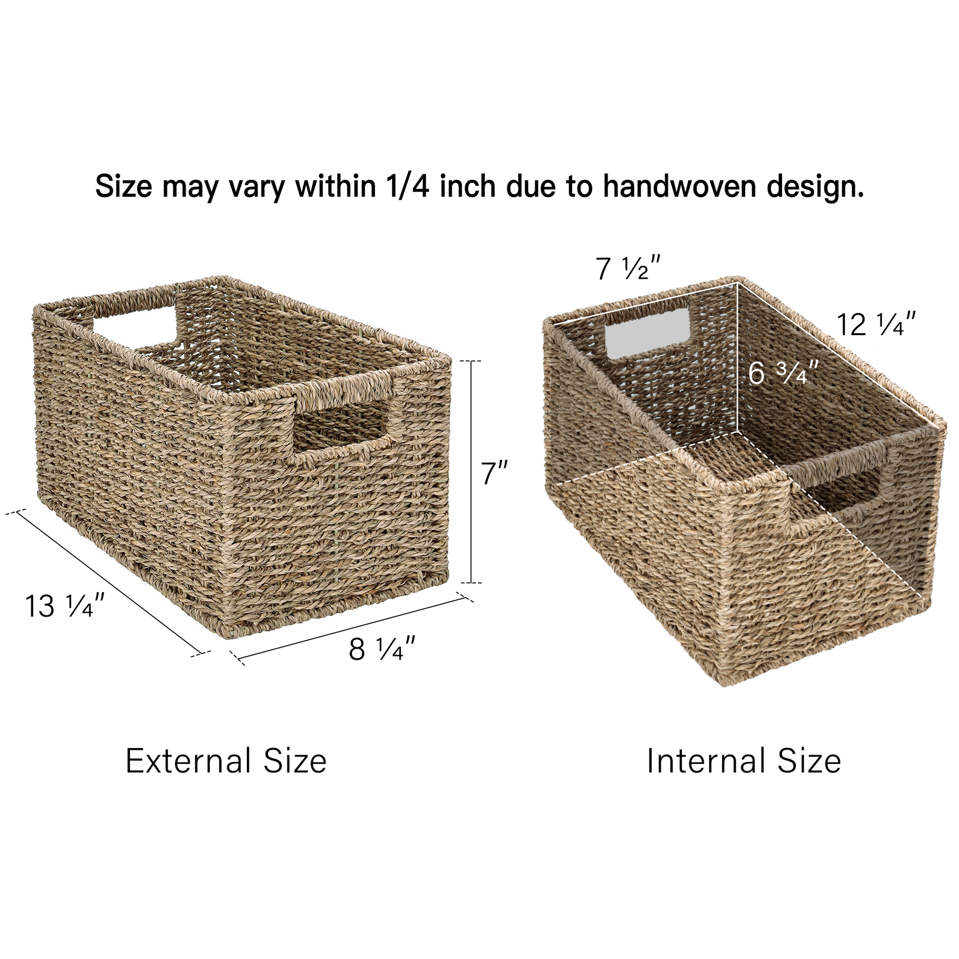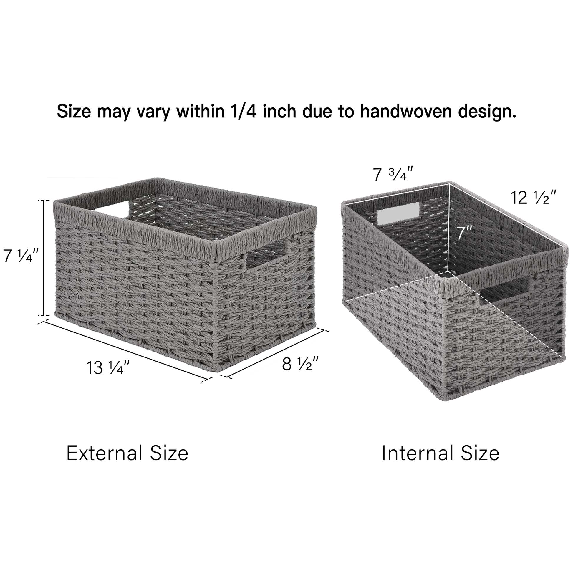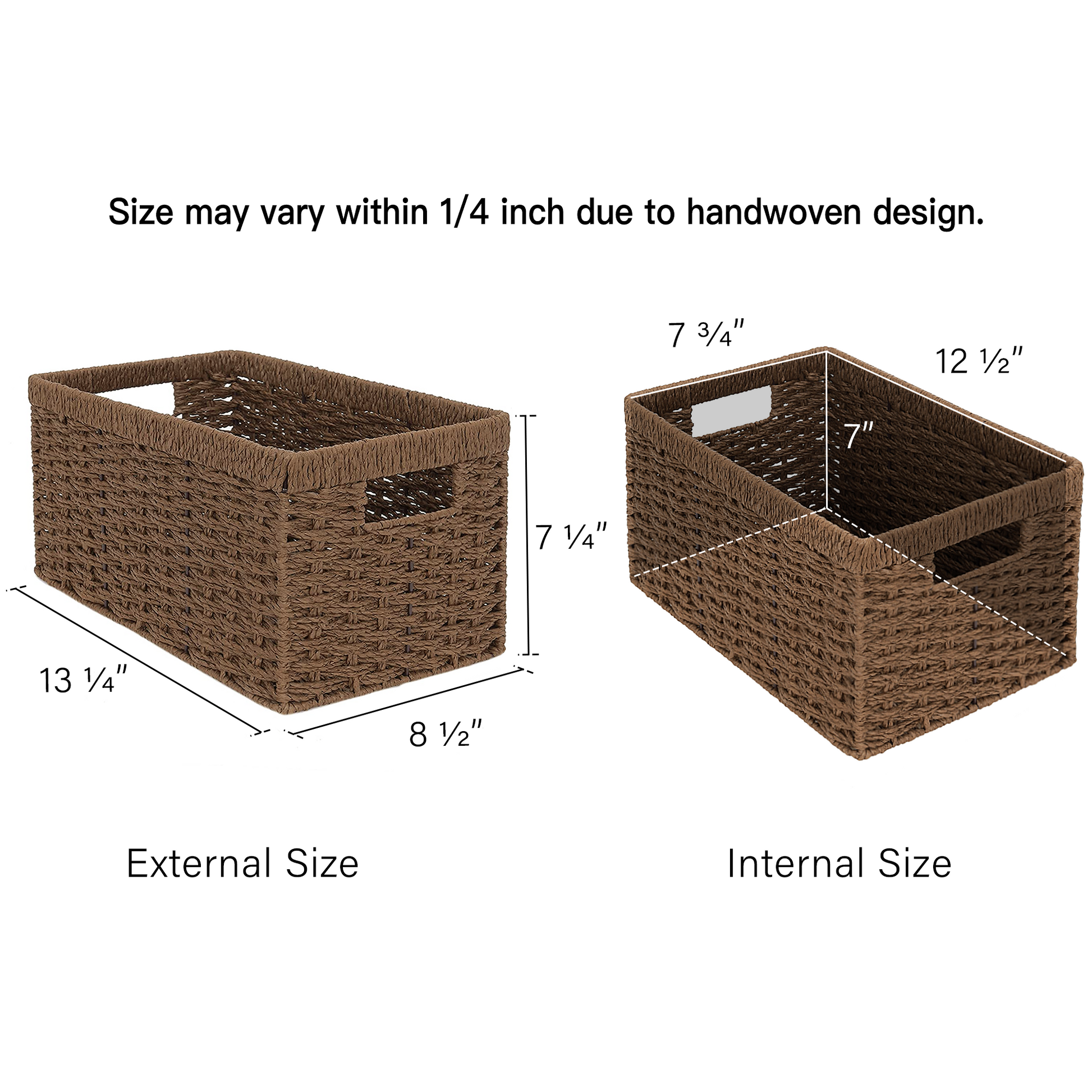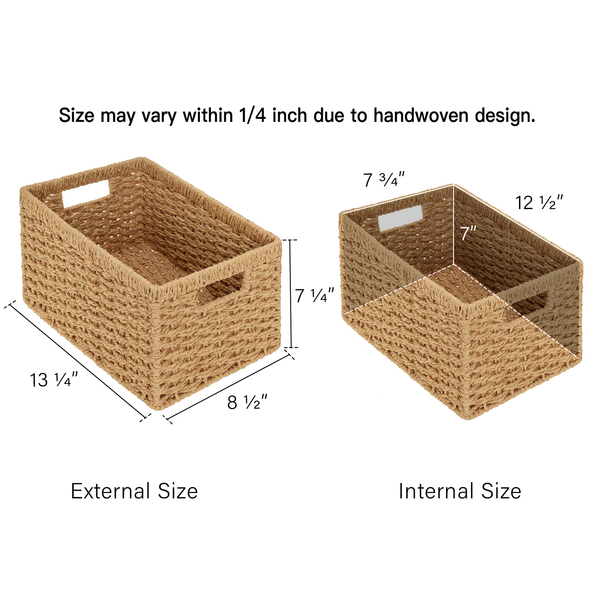 Size may vary within 1/4 inch due to handwoven design and manual measurement.