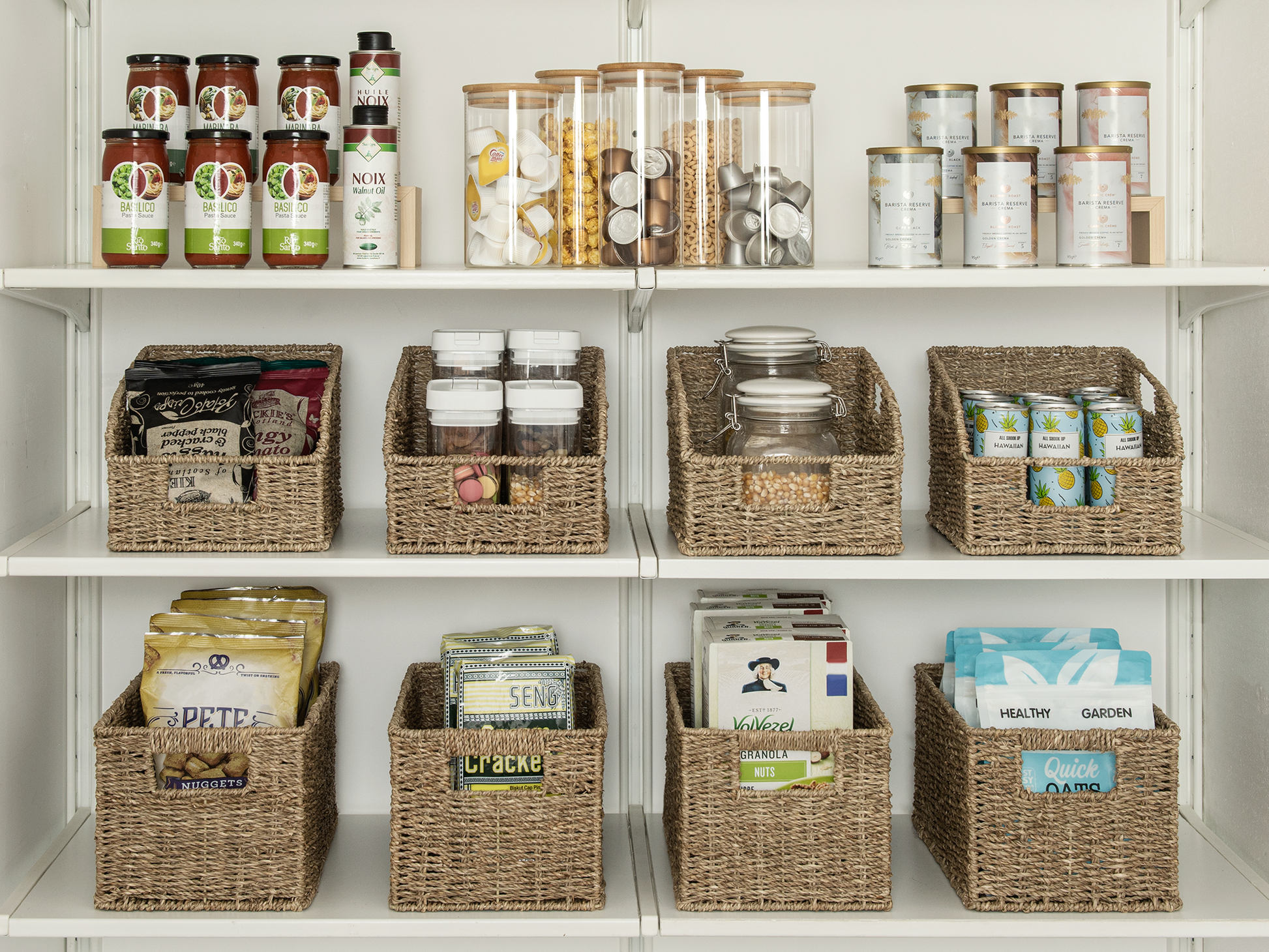 Rectangular Wicker Basket with Built-in Handles, 2 Pack