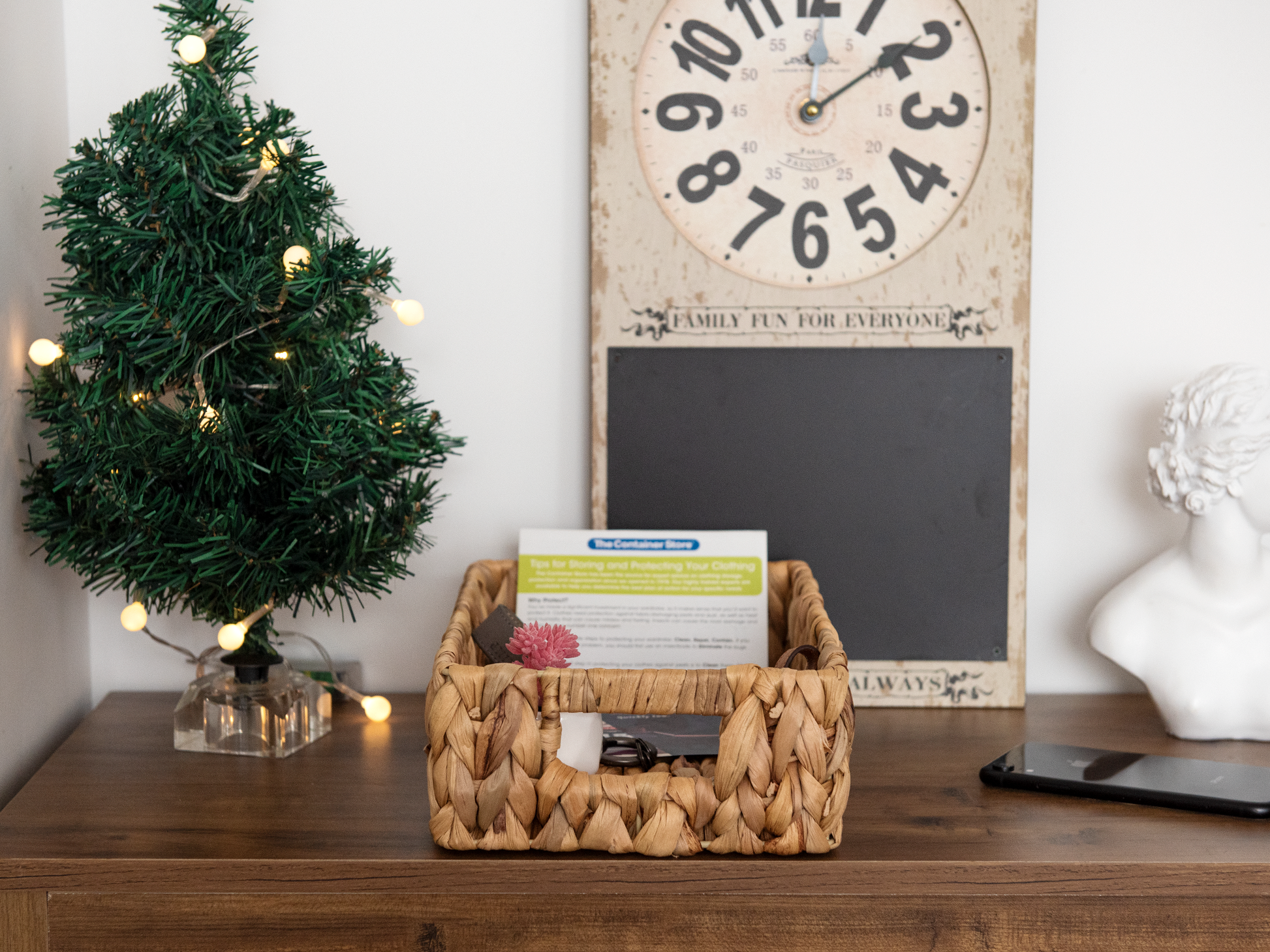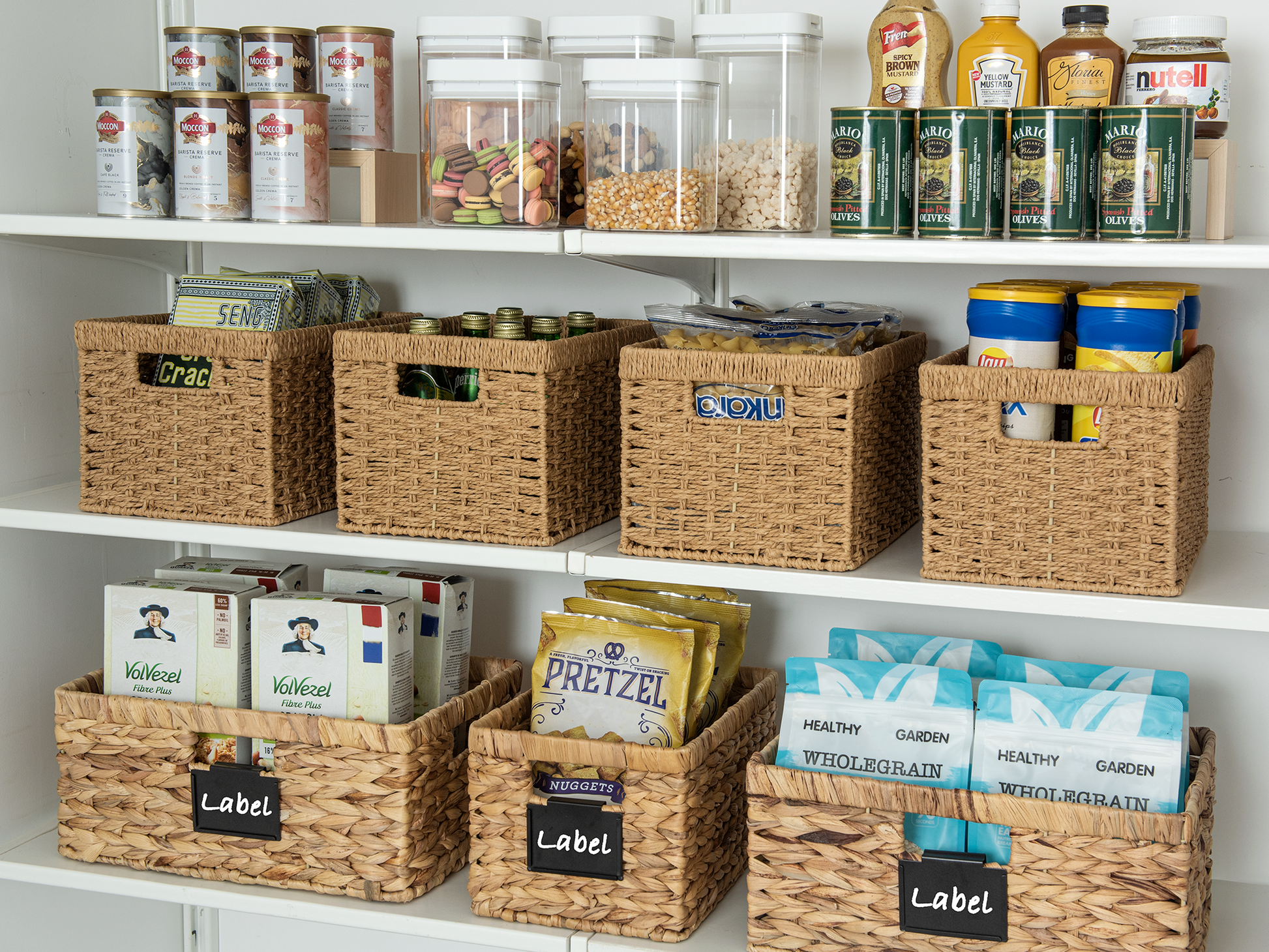Handwoven over an iron frame for sturdy storage.