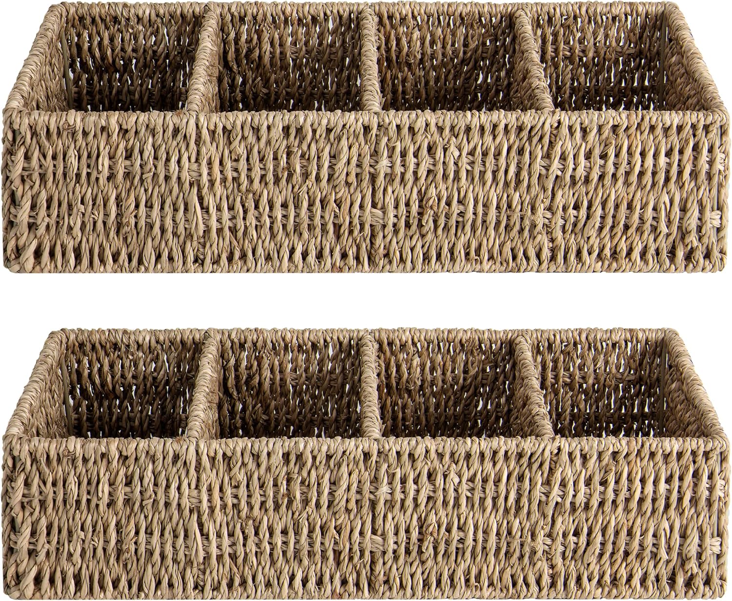 Small Wicker Baskets for Organizing with 4 Sections, 2 Pack