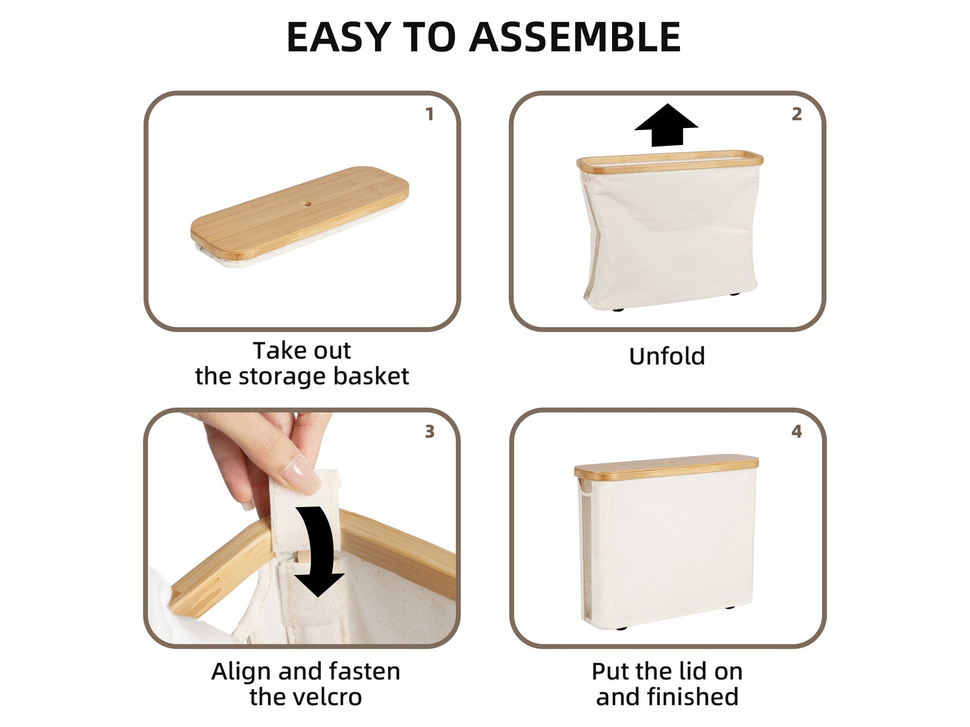 - Foldable for Space-Saving Storage: The toilet paper holder features a stable bamboo frame with thick cloth material, designed for compact storage and space-saving functionality. It is easy to assemble and comes with four bamboo support rods for stability and can be folded for storage when not in use.