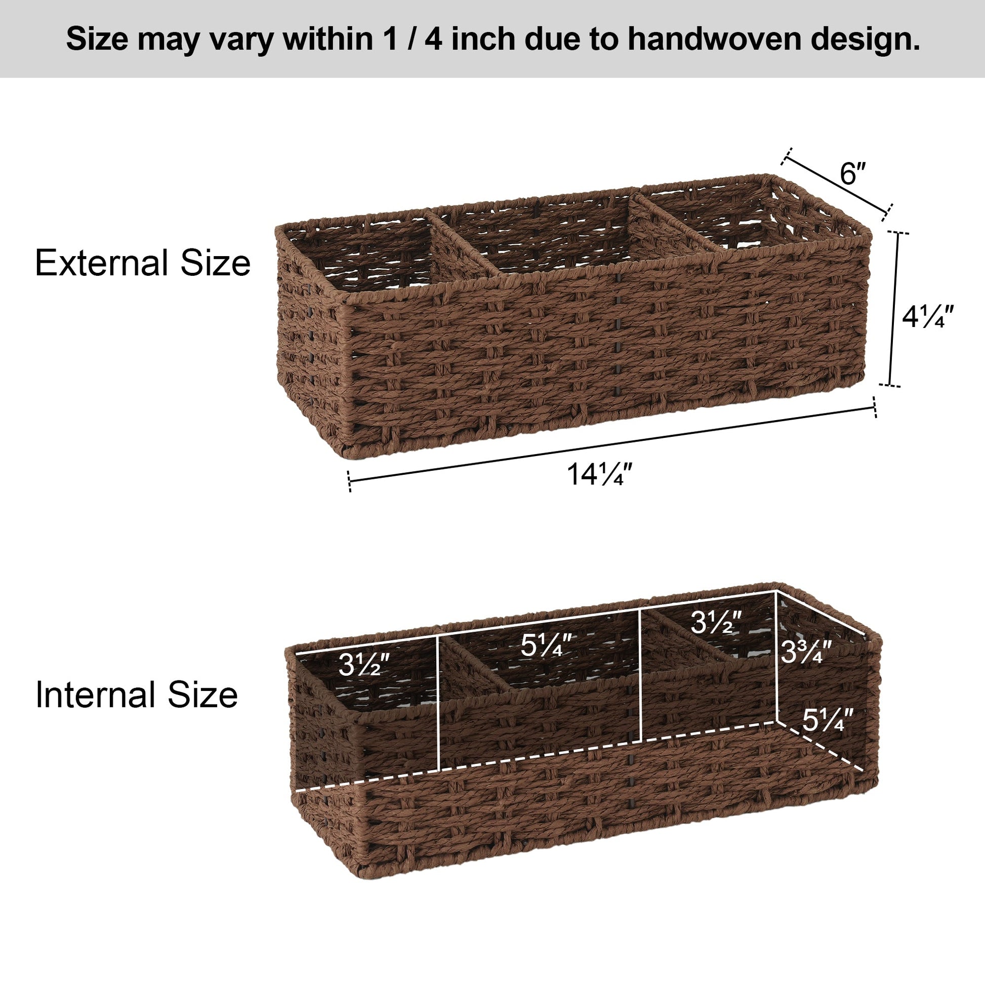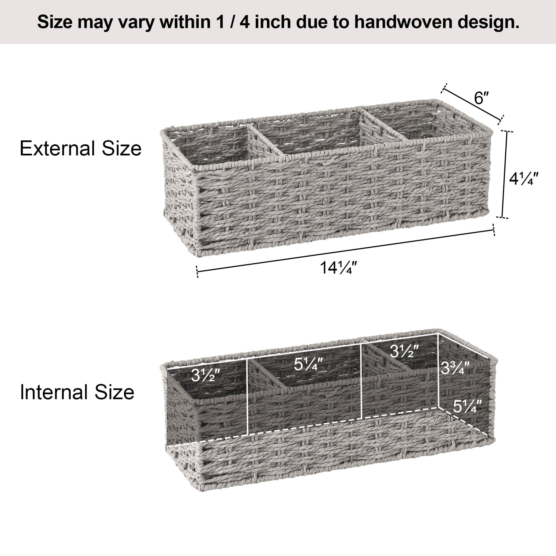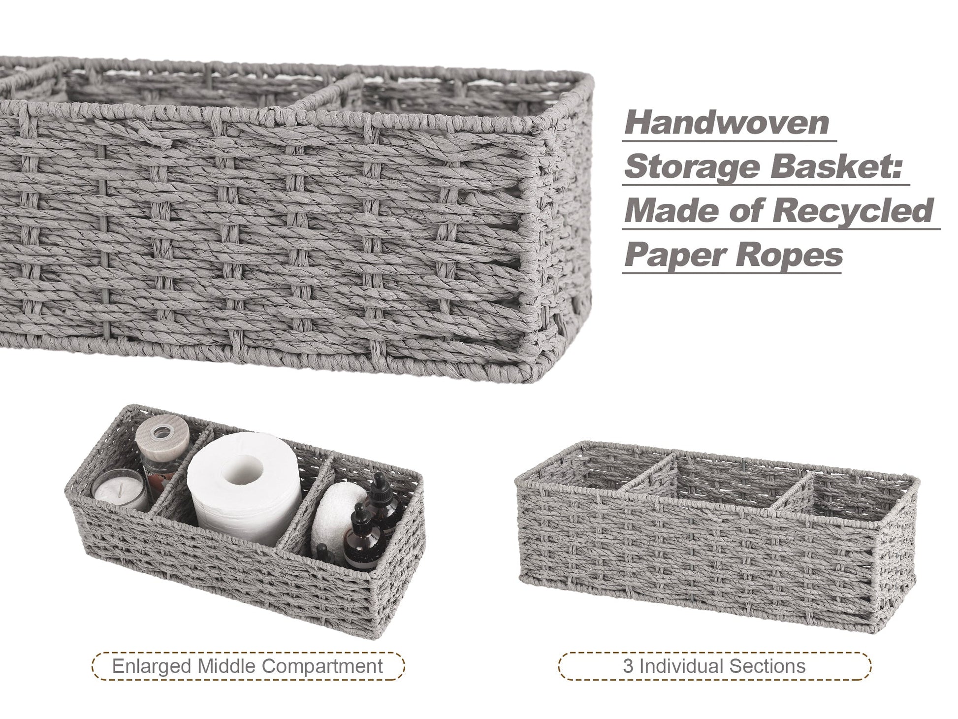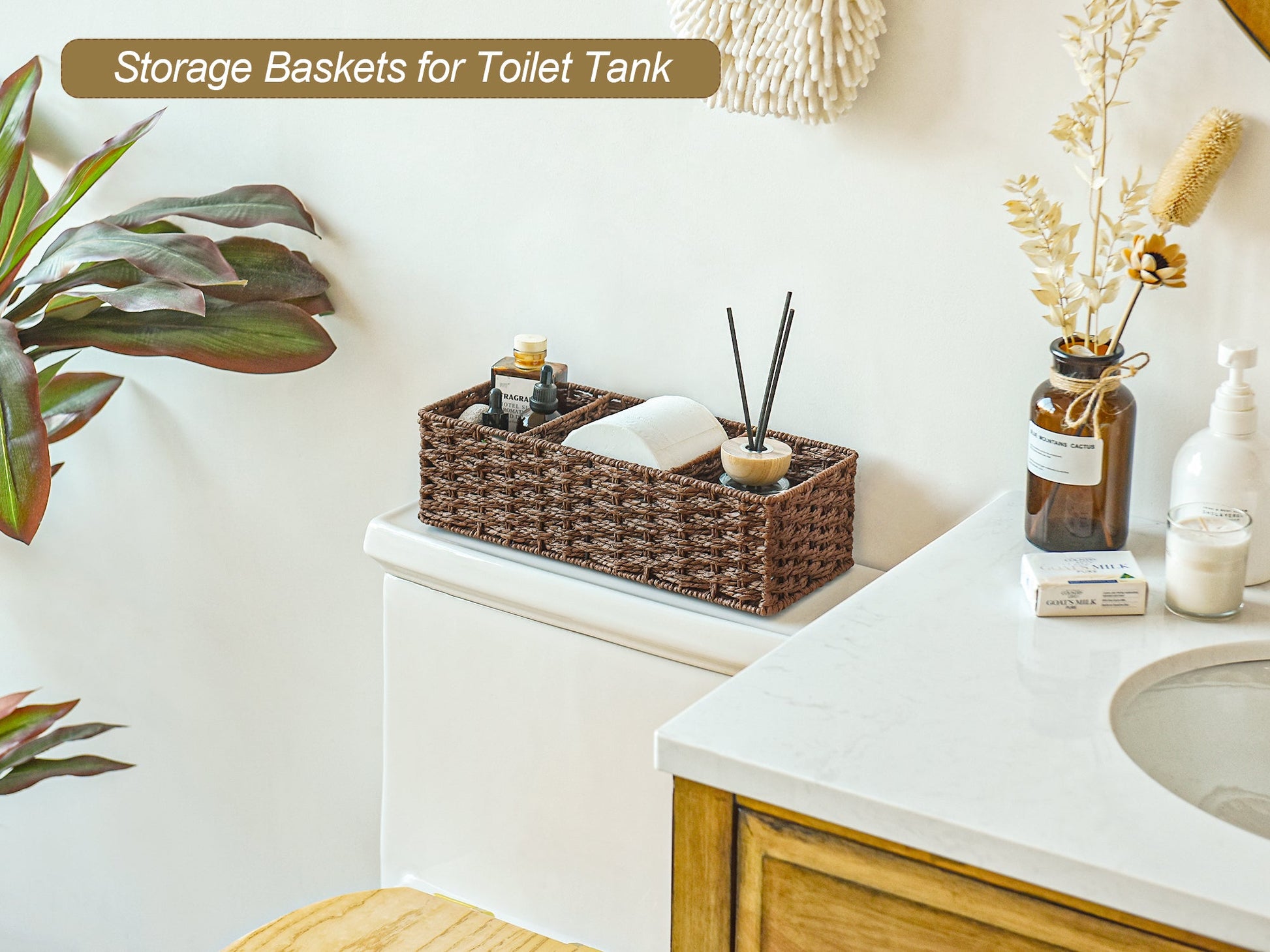 Wicker Toilet Basket Tank Topper, 3-Section Storage Baskets, 2-Pack