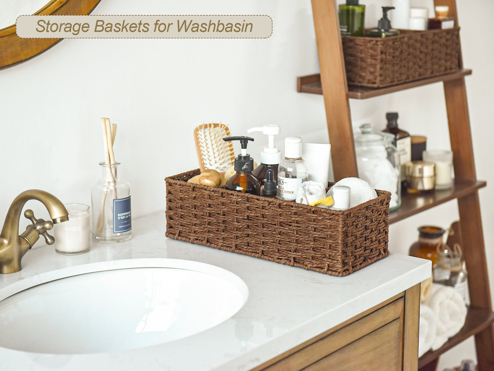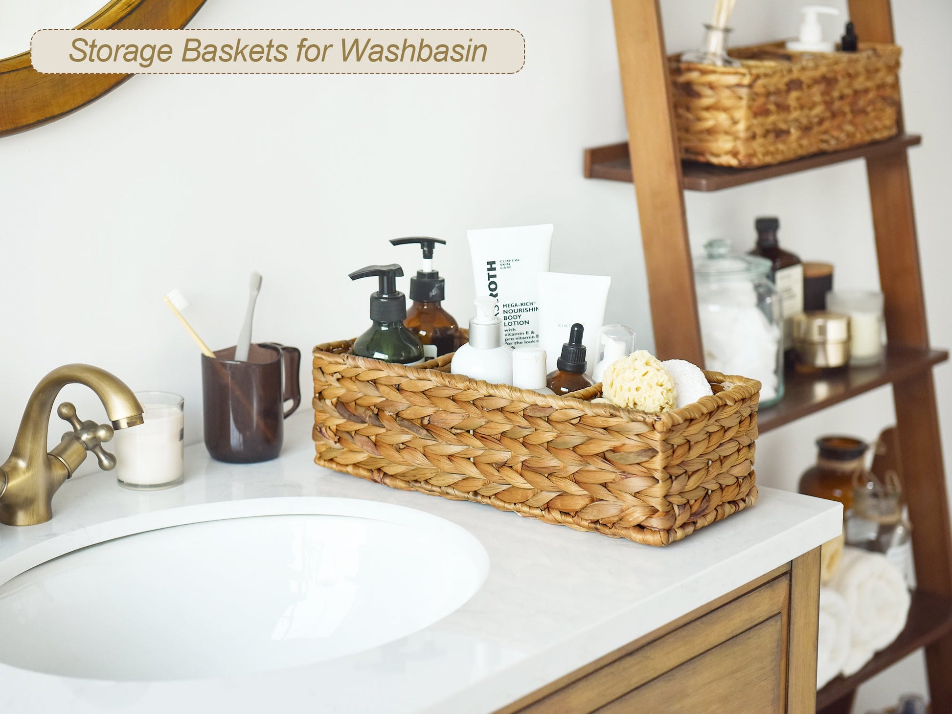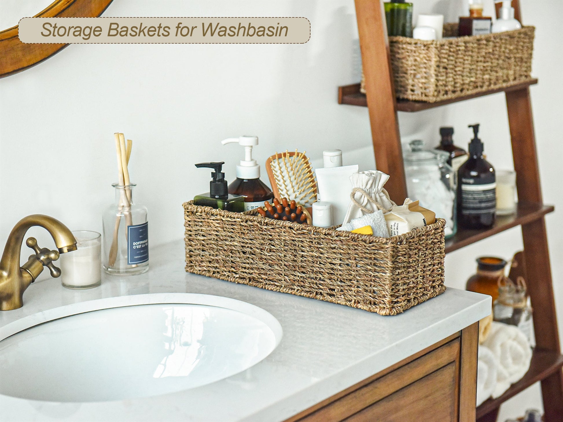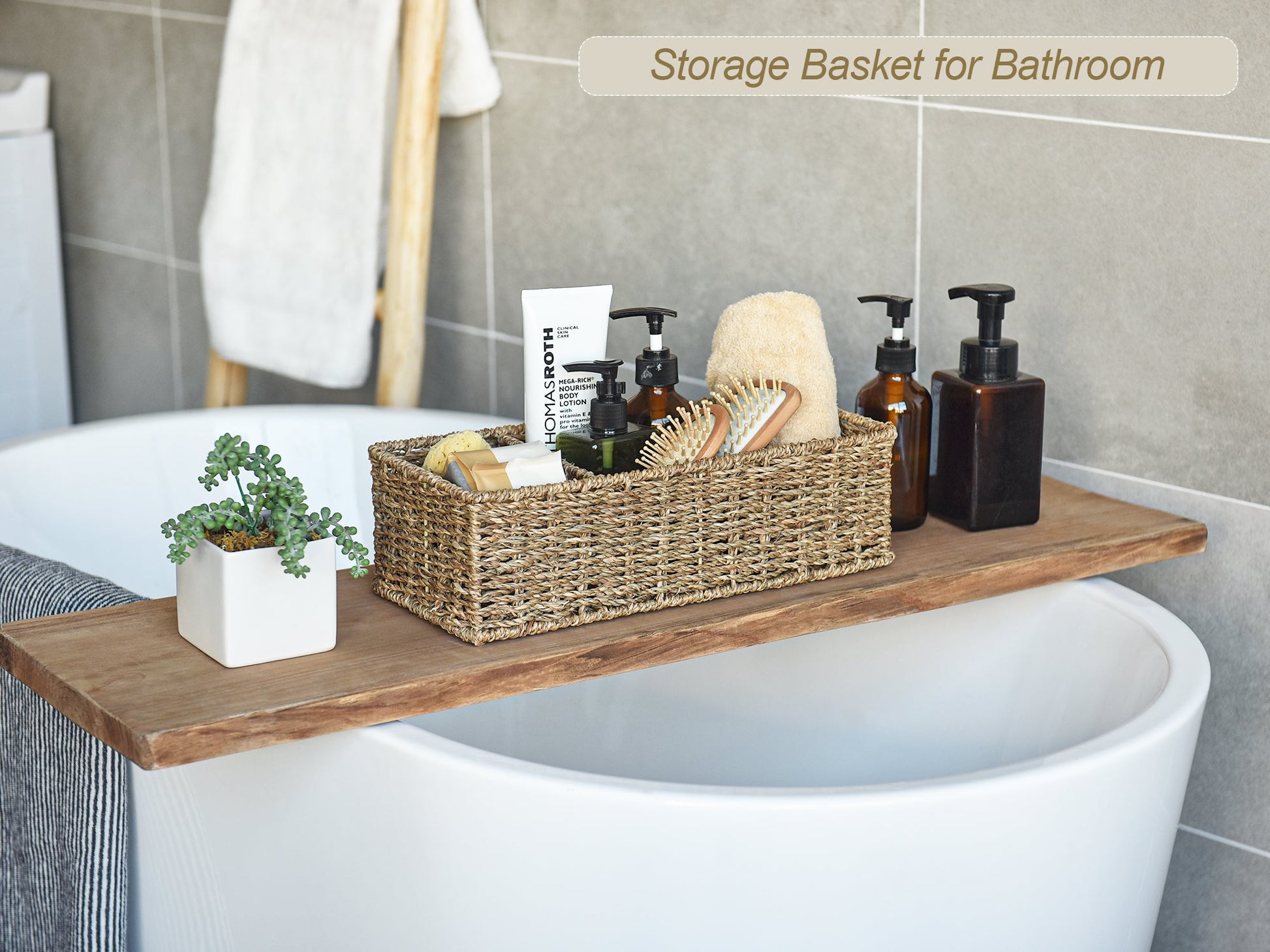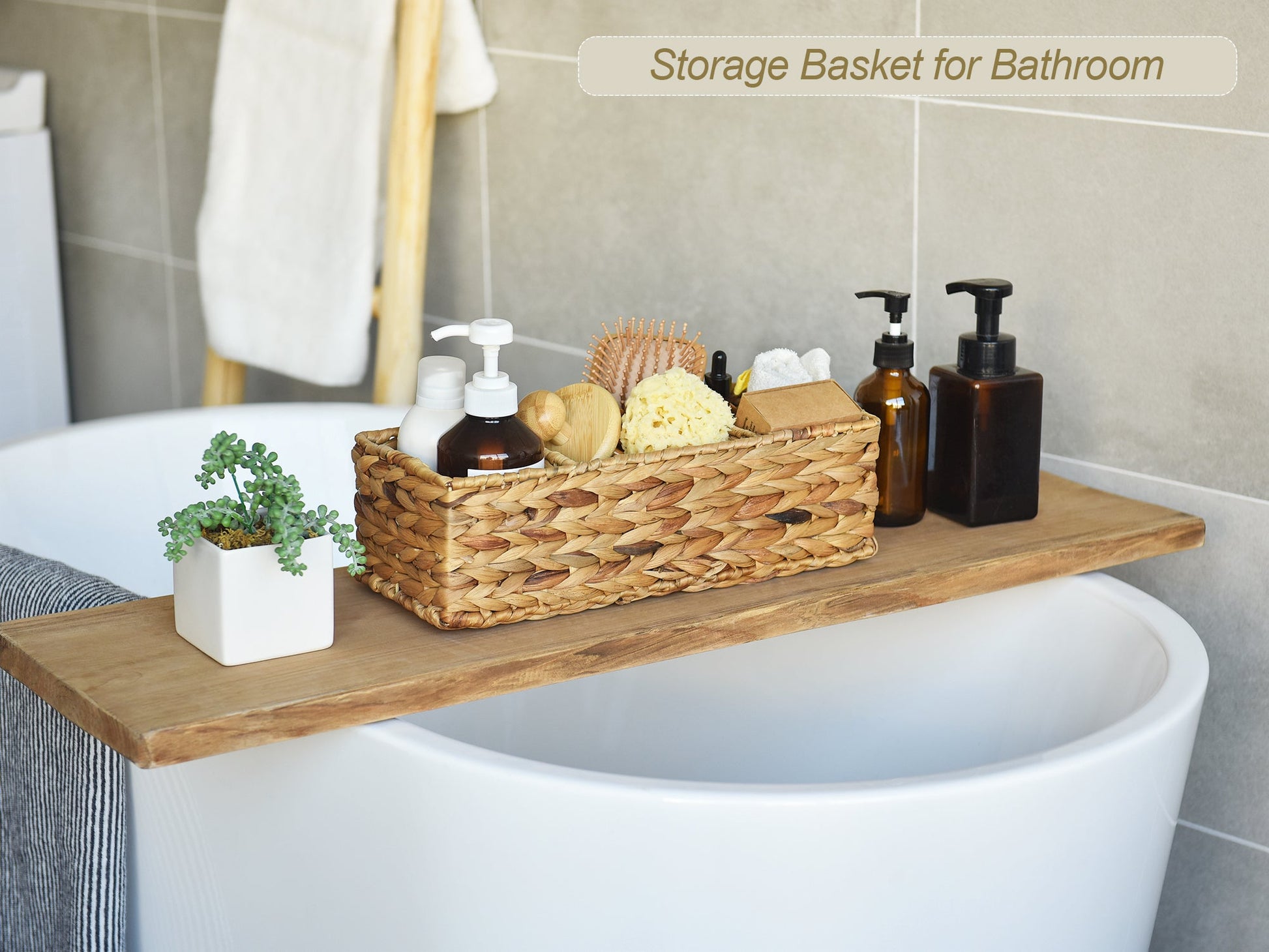 Wicker Toilet Basket Tank Topper, 3-Section Storage Baskets, 2-Pack