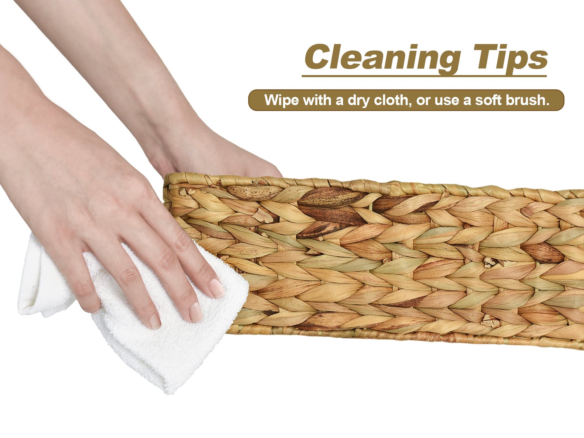 The bathroom organizer baskets for toilet paper are made of sustainable water hyacinth and reduce our impact on the planet.