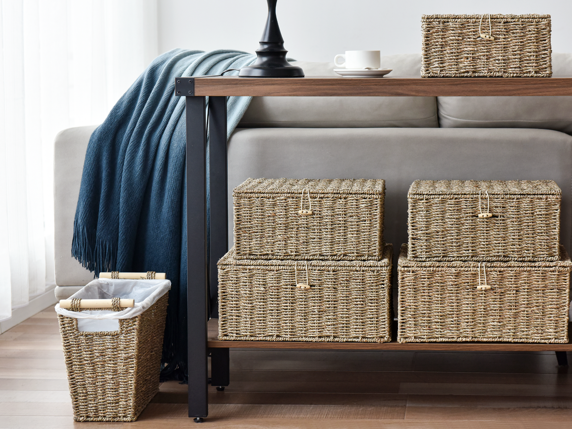 The versatile handwoven garbage bin is also ideal for gathering newspapers, toys, magazines, etc.